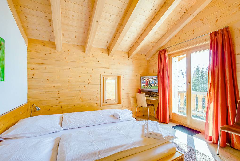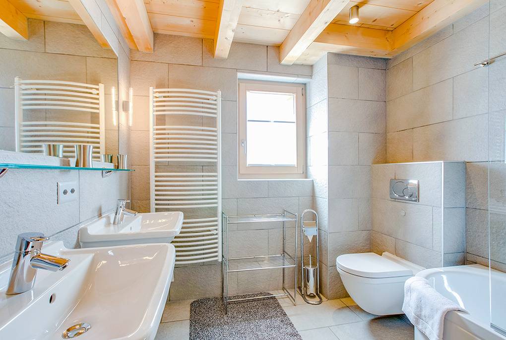 Haus: Schöne, komfortable Chalethälften mit Kaminofen. Jede ein großzügiges 4-Zimmerhaus mit 115 qm Wohnfläche über 2 Etagen. Moderne, sehr geschmackvolle Einrichtung, hochwertige Ausstattung. Kostenloser Internetzugang über W-Lan. Waschmaschine, Trockner. E-Heizung. Warmwasser über 250 l E-Boiler. Terrasse, Balkon. Nichtraucherhaus. Garage für 1 Pkw mit Skistellmöglichkeit.