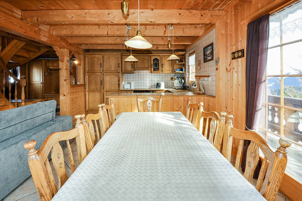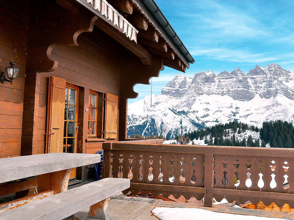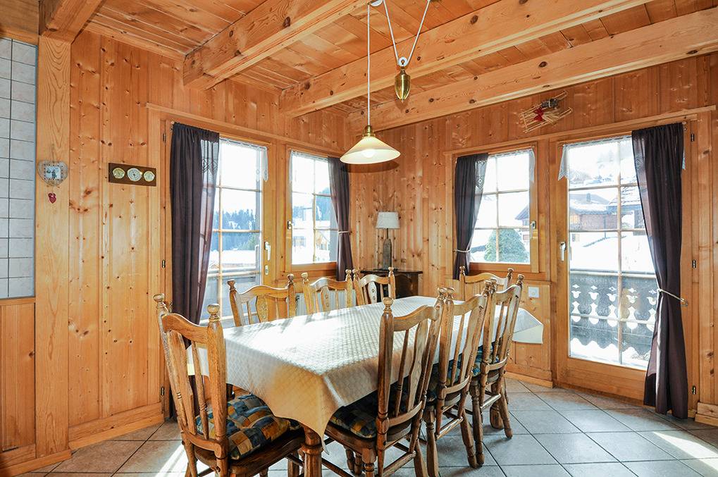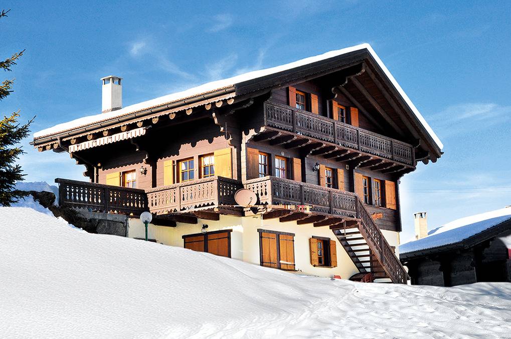 Haus: Schönes Chalet mit Kamin. 5-Zimmer-Haus mit 140 qm Wohnfläche über 2 Etagen. Gemütliches Chalet-Flair durch schöne Holzvertäfelung in allen Räumen. Internetzugang über W-Lan gegen Gebühr. Zentralheizung. Nichtraucherhaus. Großer Balkon mit Sitzmöbeln, Blick auf die Skipisten und die umliegende Bergwelt. Separate Wohnung im Tiefparterre. Beim Haus: uriges kleines Holz-Chalet als Skiraum. 4 Pkw-Stellplätze, davon 2 überdacht.