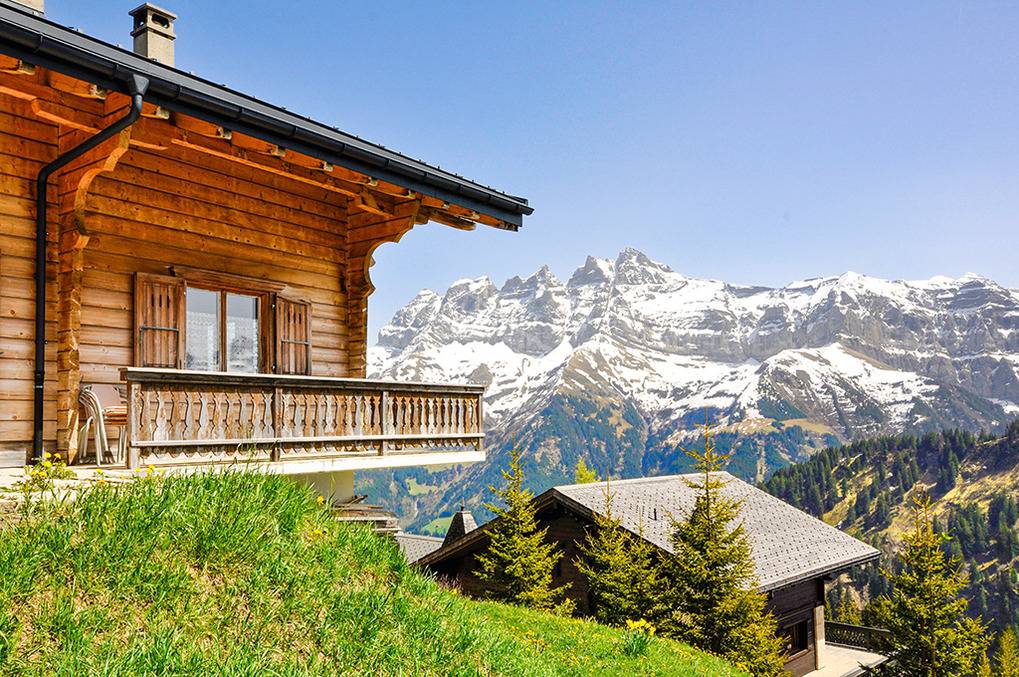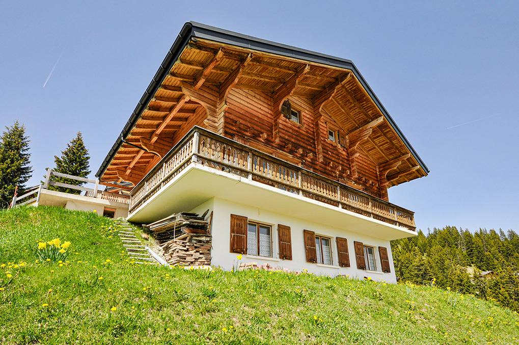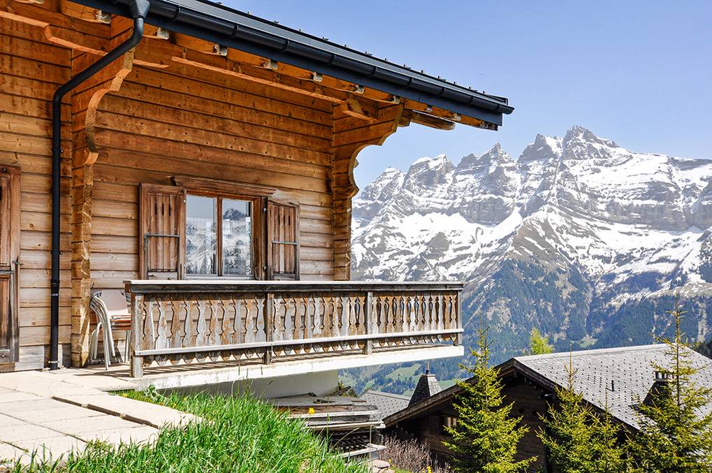 Ort: Les Crosets. Herrliche Lage oberhalb des Ortes in einer Chalet-Siedlung. Ruhige Hanglage, sehr schöner Blick auf die imposante Berggruppe Dents du Midi. Schöne Wanderwege und MTB-Routen in unmittelbarer Nähe (100 m). Ortsmitte, Sessellifte (Sommerbetrieb) 1,5 km. Champéry mit Sportzentrum, schönem Freibad, Supermarkt 10 km.