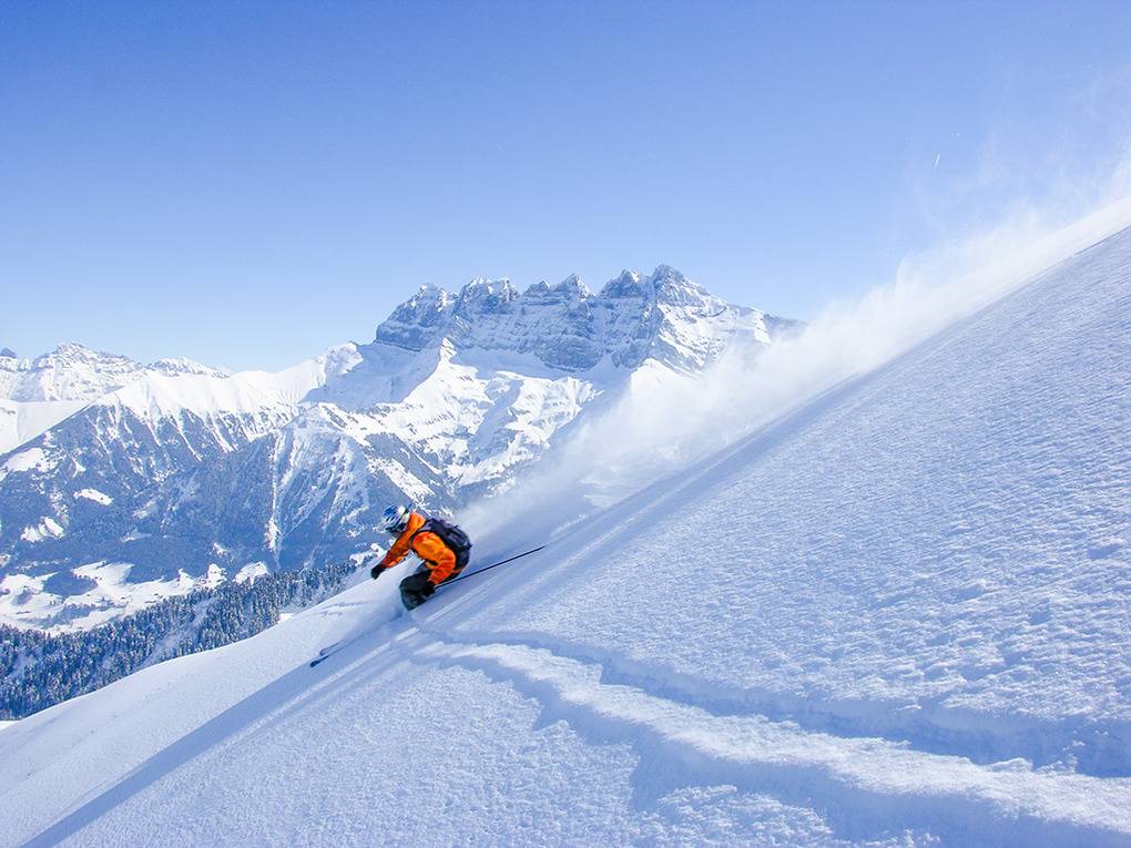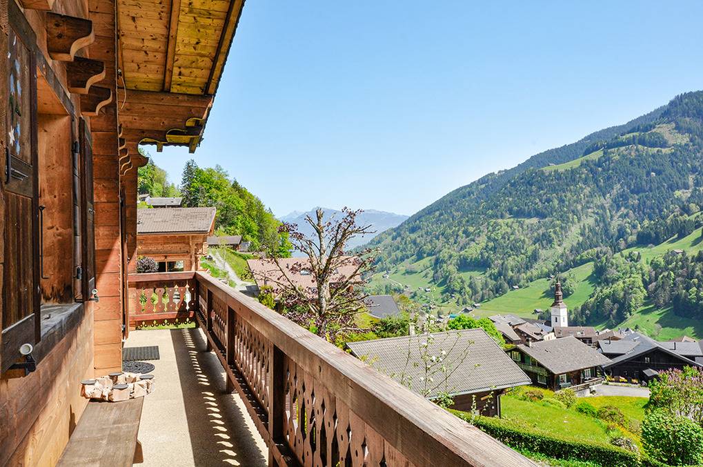 Ort: Val d'Illiez. Ruhige Hanglage am oberen Ortsrand mit schönem Blick über den Ort und auf die imposante Bergkette "Dents du Midi". Ortsmitte 400 m. Seilbahn Champéry 4 km. Bahnhof, Kleinzug nach Champéry nur 500 m.