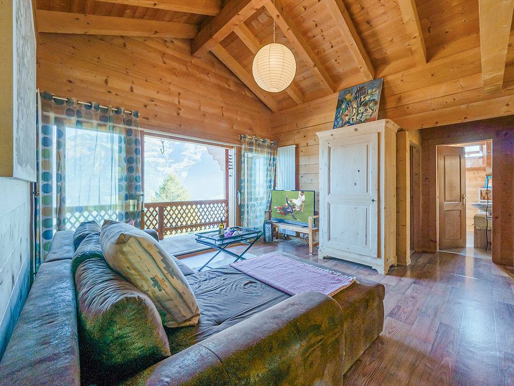 Ort: Kleiner Weiler vor Les Crosets. Ruhige Hanglage mit sehr schönem Blick auf die Berggruppe "Dents du Midi". Les Crosets mit Skiliften, Geschäften 4 km. Skilifte Champoussin 4,5 km. Postbus ca. 500 m. Sportzentrum Champéry mit Eislaufhalle, Hallenbad, Kletterwand 8,2 km.
