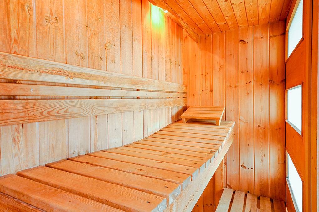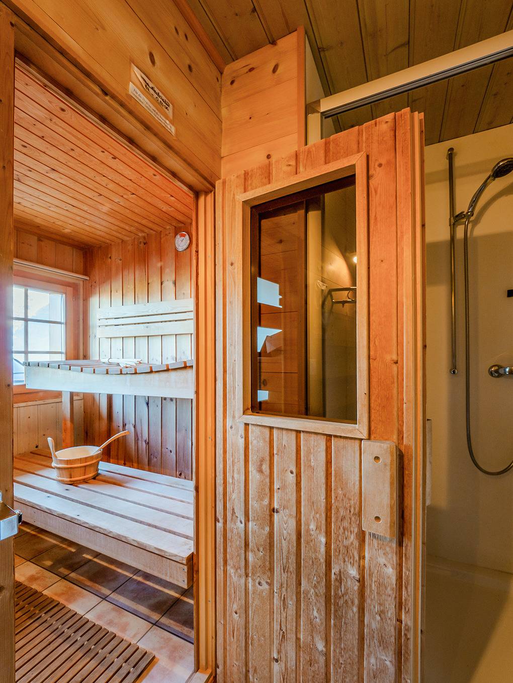 Parterre: Kleiner Wellnessbereich: Panoramasauna mit schönem Blick auf die Bergwelt, Dusche. Abstellraum.
