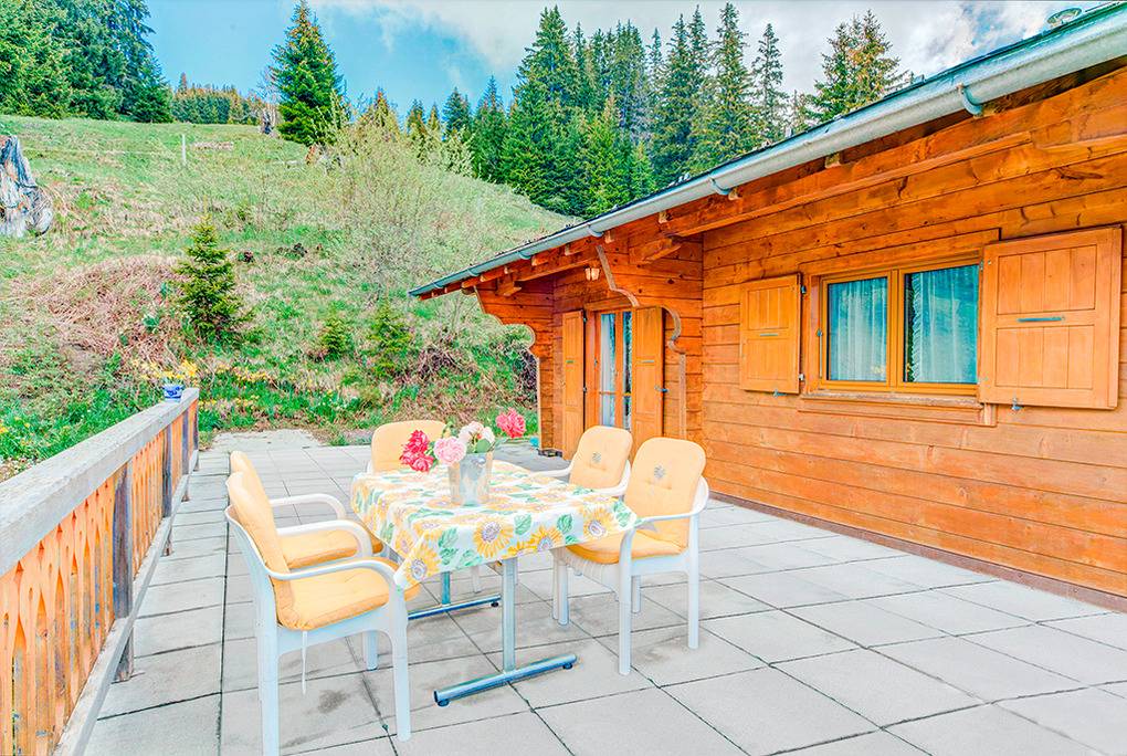 Ort: Les Crosets. Gute Lage in einer hübschen Chalet-Siedlung oberhalb des Ortes. Ruhige Hanglage, schöner Blick auf die beeindruckende Berggruppe Dents du Midi. Schöne Wanderwege und MTB-Routen in unmittelbarer Nähe (100 m). Ortsmitte ca. 1 km. Sportzentrum Champéry mit Eislaufhalle, Hallenbad, Kletterwand 10 km.