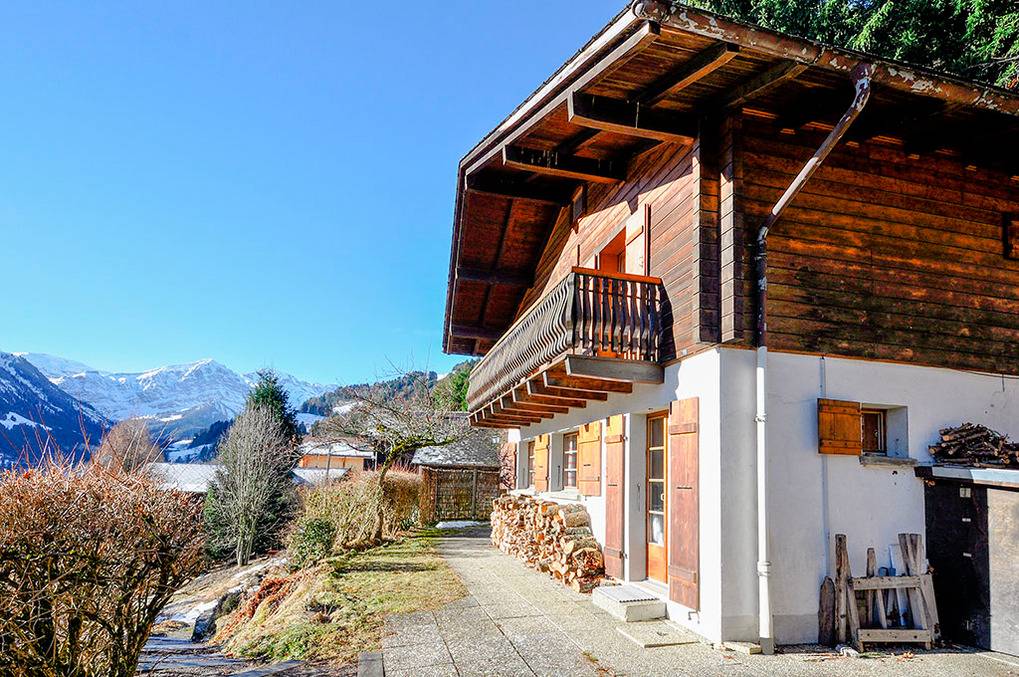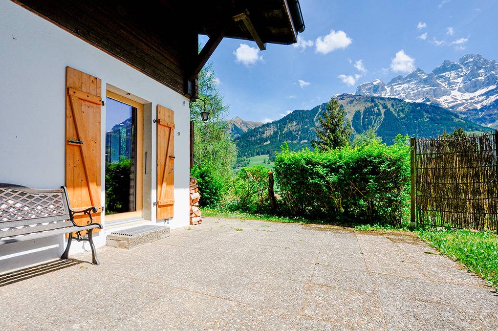 Ort: Val d'Illiez. Ruhige Lage am oberen Ortsrand mit schönem Blick über den Ort und auf die imposante Bergkette "Dents du Midi". Ortsmitte 400 m. Champéry mit Sportzentrum und Gondel (Sommerbetrieb) 3 km. Bahnhof, Kleinzug nach Champéry 500 m.