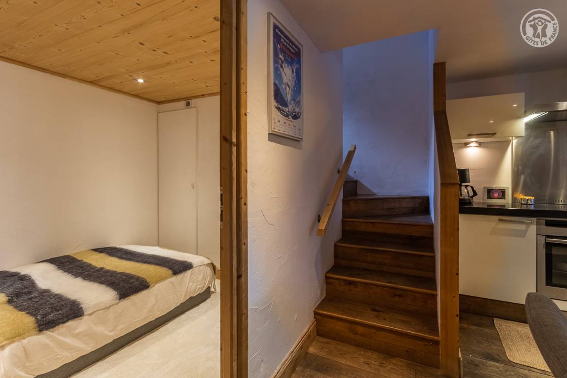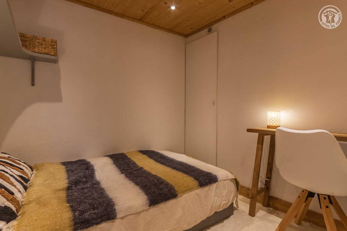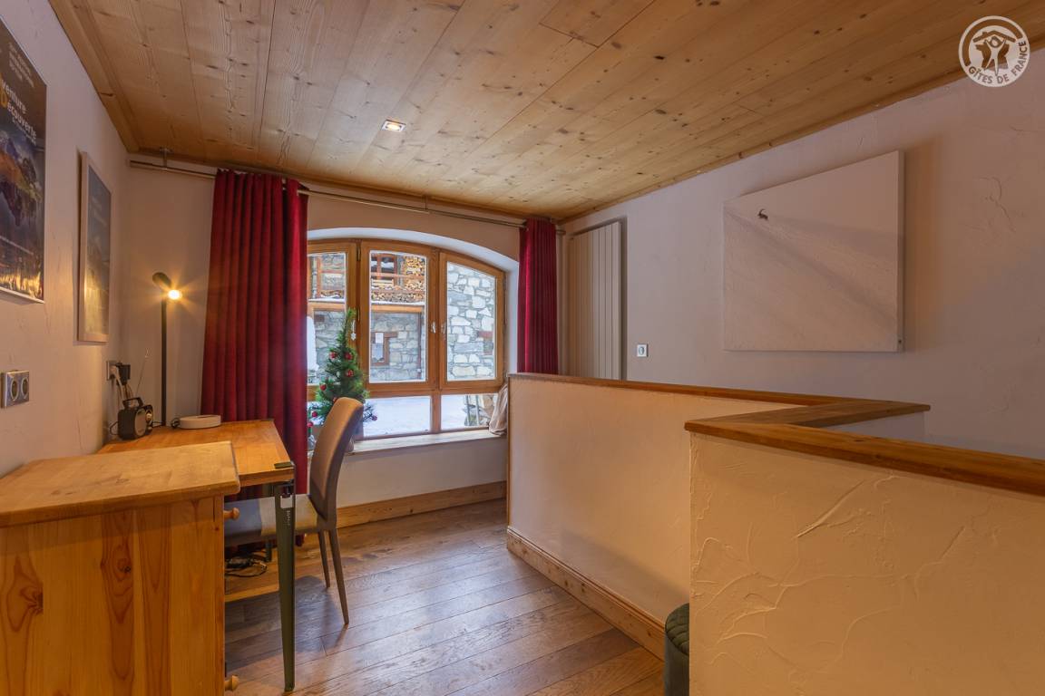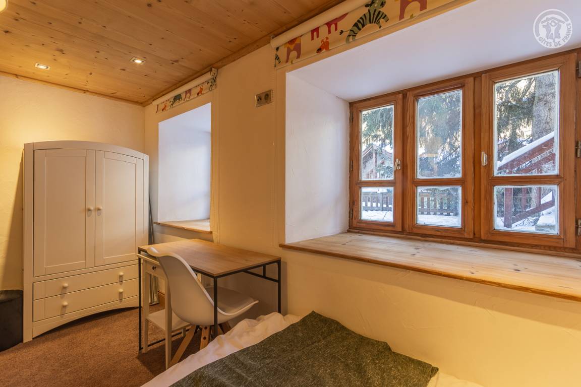 Ferienhaus auf 2 Ebenen mit 2 möglichen und unabhängigen Eingängen (von der Rue du Laisinant über eine Außentreppe oder vom Chemin de la Vanoise), bestehend aus im Erdgeschoss (Seite der Rue du Laisinant): ein Eingang, eine Küche, ein kleines Schlafzimmer ohne Zugang zum außen (1 Einzelbett 120 x 190 cm), 1 Schlafzimmer (3 Einzelbetten 90 x 190 cm, davon 2 Etagenbetten), 1 Schlafzimmer (1 Doppelbett 140 x 190 cm) halbunterirdisch mit Öffnung über ein Fenster und ein Badezimmer mit eigenem Wasser (Dusche und WC) 1. Stock: Wohnzimmer mit Arbeitsbereich (ein zusätzliches Schlafsofa für 2 Personen) mit angeschlossenem Fernseher, ein Kamin (1. Holzflamme angeboten, folgende Flammen zahlbar), eine Halle (Eingang über den Chemin de la Vanoise), ein Wohnzimmer- Wohnküche (Schlafsofa 140 x 190 cm für 2 Personen), Schlafzimmer (1 Doppelbett 140 x 190 cm), Badezimmer (Badewanne), separates WC, Terrasse.