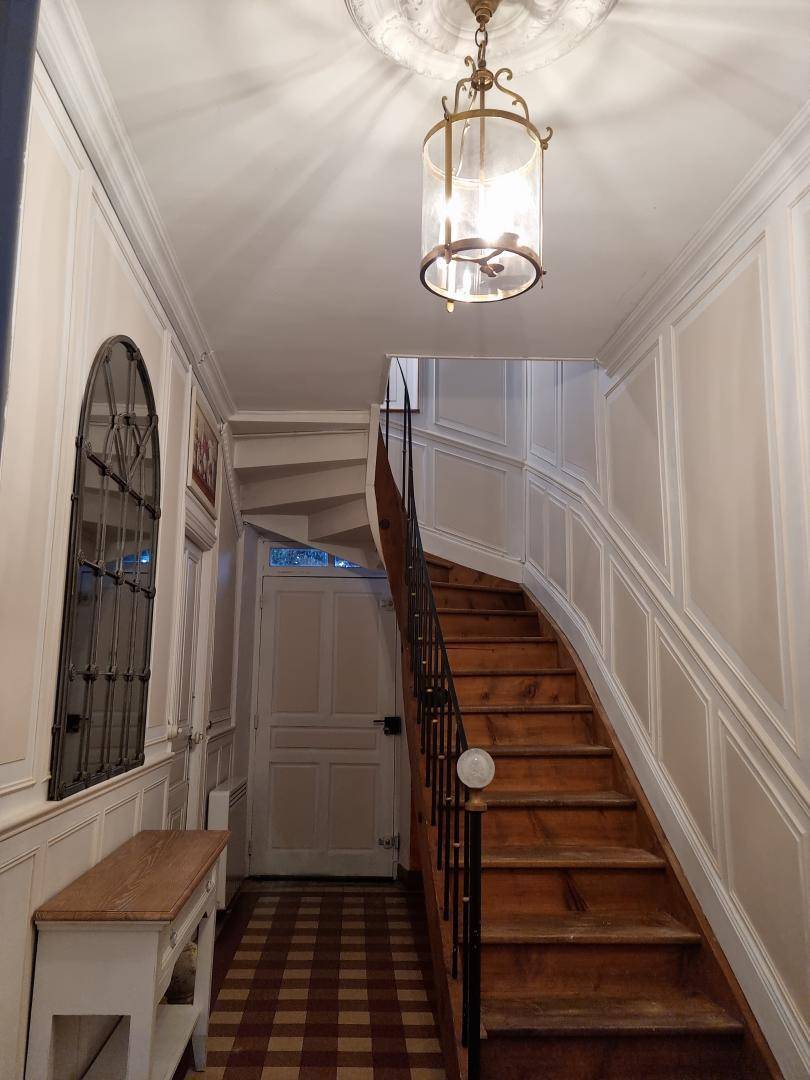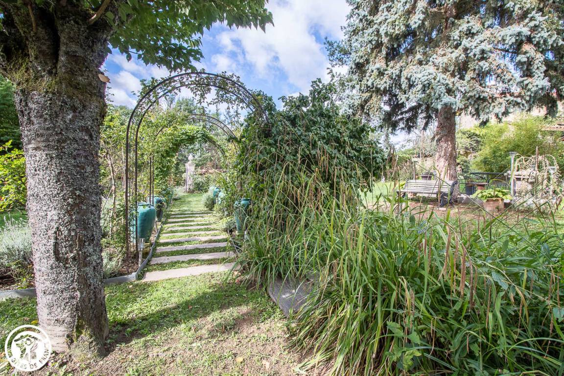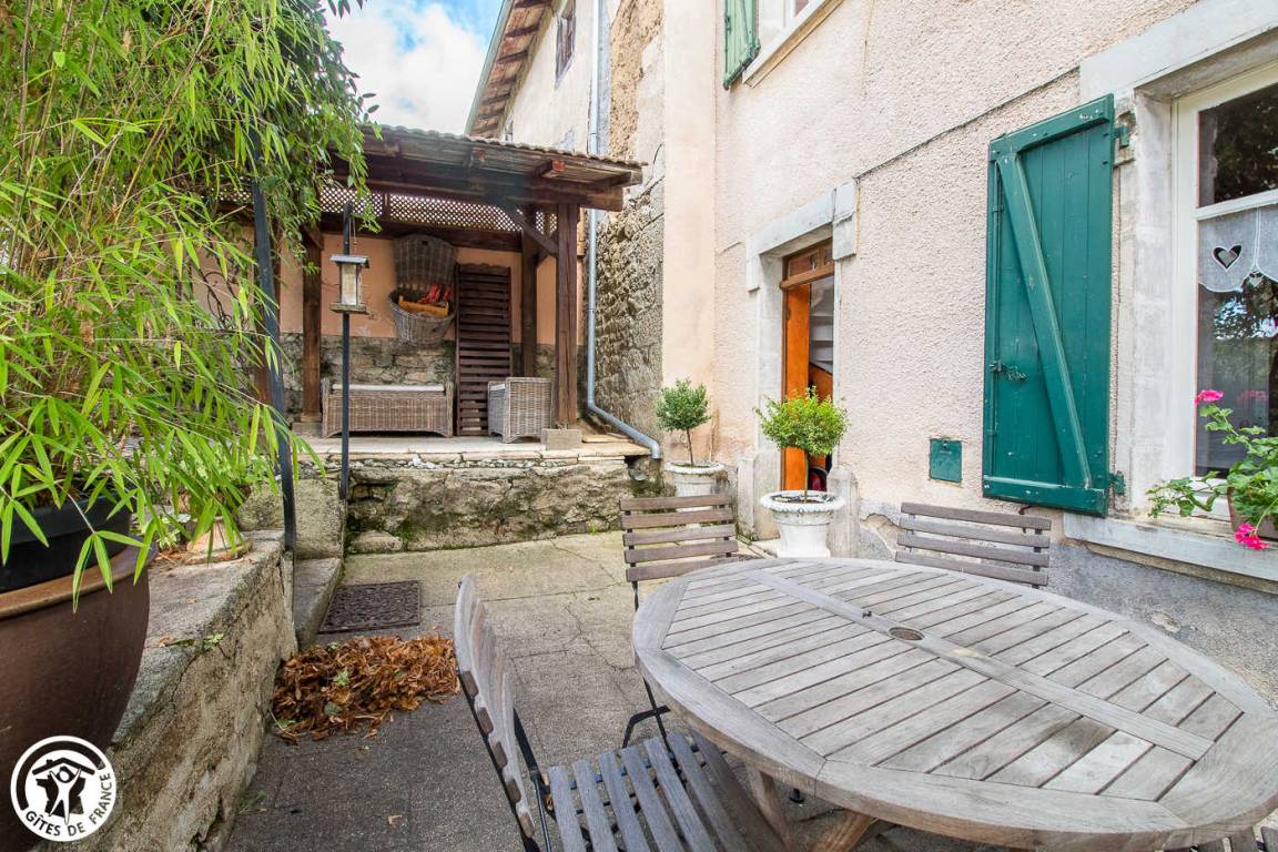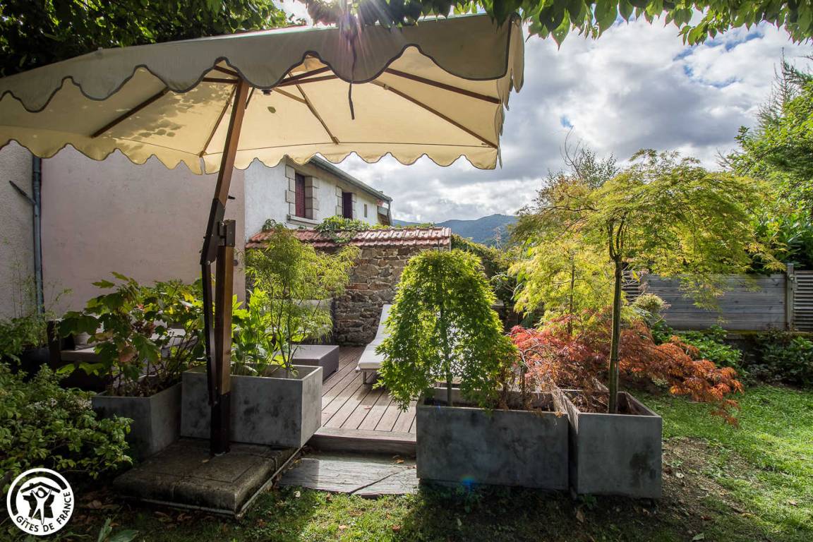 „Ancienne maison tous conforts dans un cadre verdoyant, très calme. Terrasse et grand jardin fleuri. Nombreux endroits ombragés. Partie du jardin clôturée pour notre chien.“