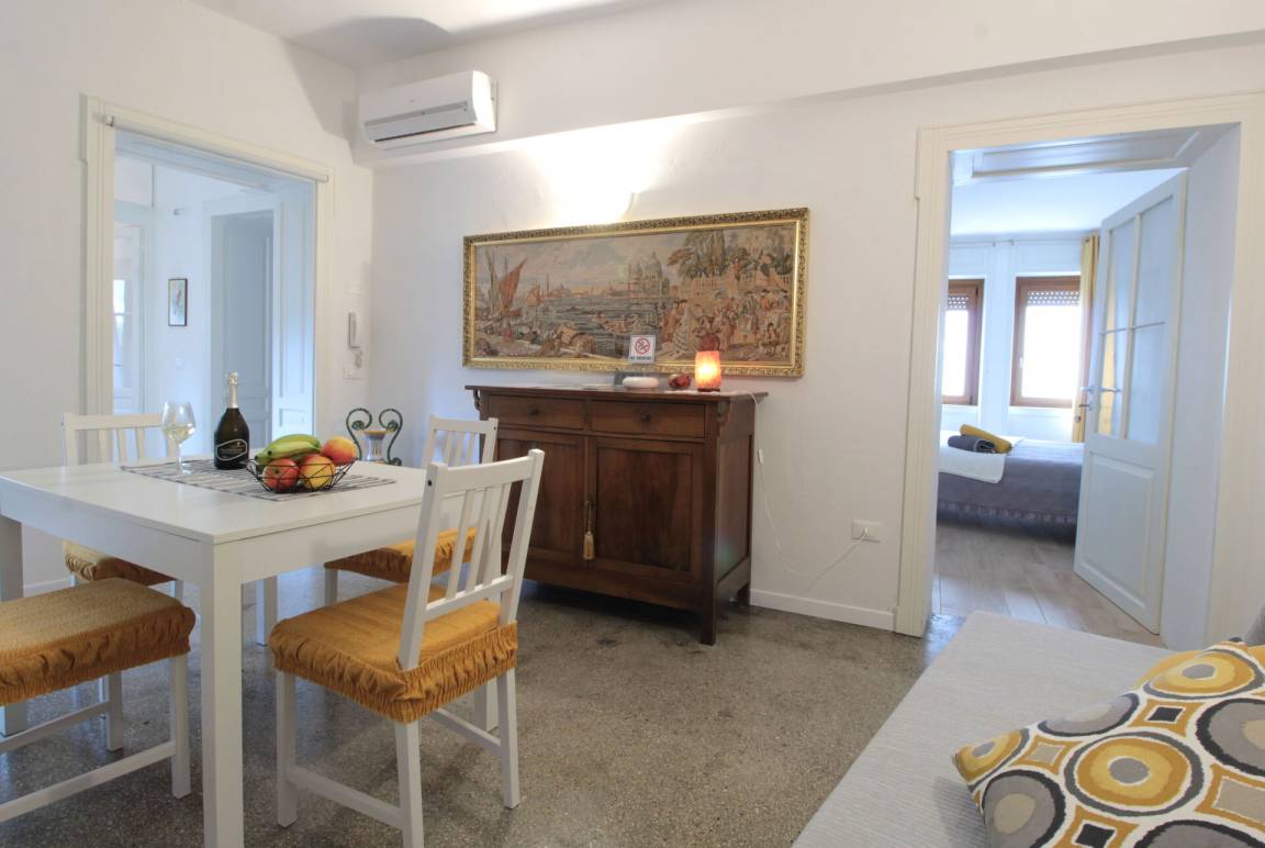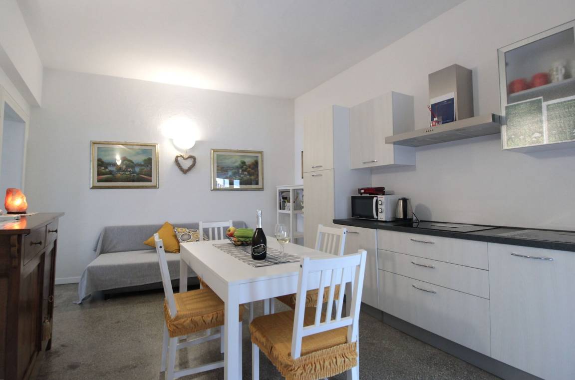 Wohnküche: gut ausgestattete Küche, Esstisch, Spülmaschine, Kühlschrank, Tiefkühler, Mikrowelle, Herd, Ofen, Toaster, Italienische Kaffeemaschine, Sofa, WiFi Internet, Klimaanlage.
