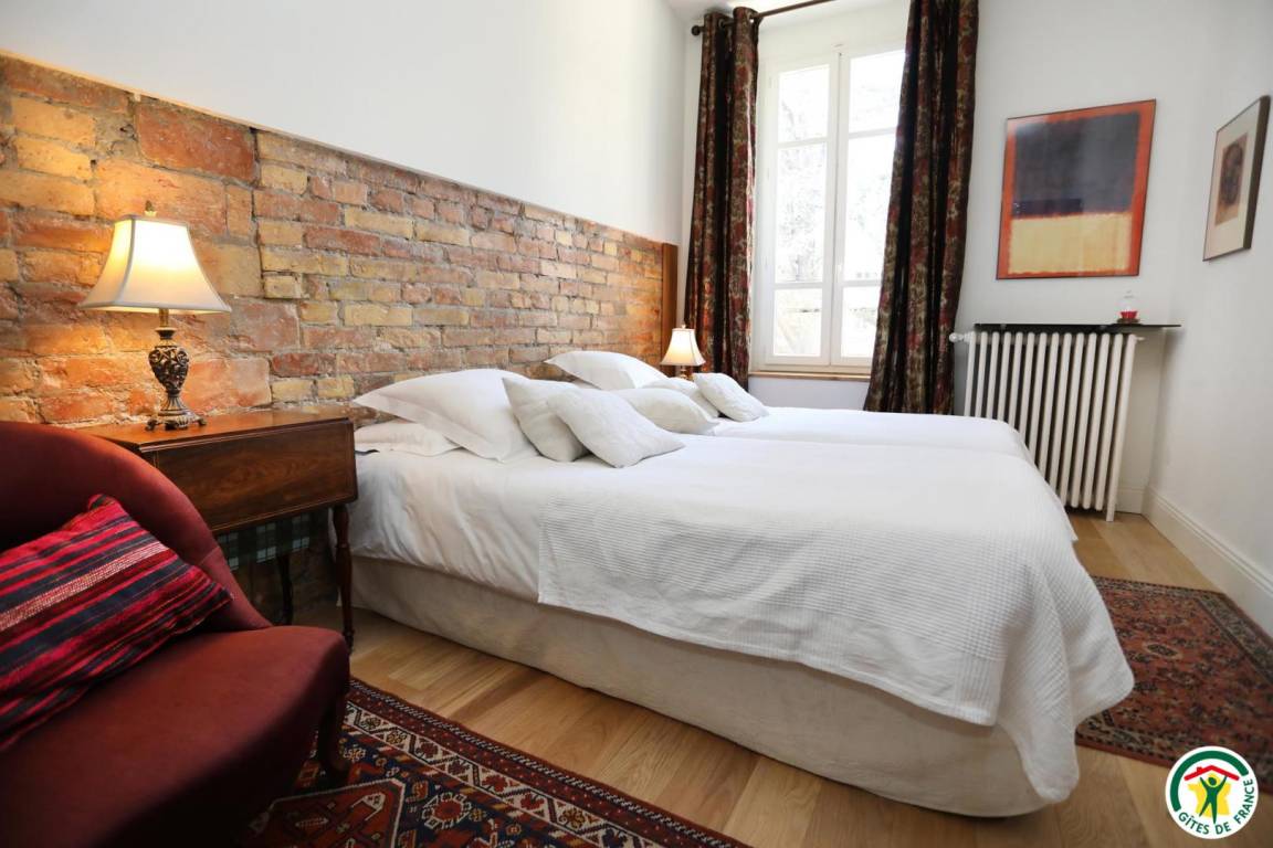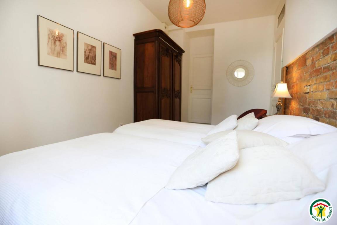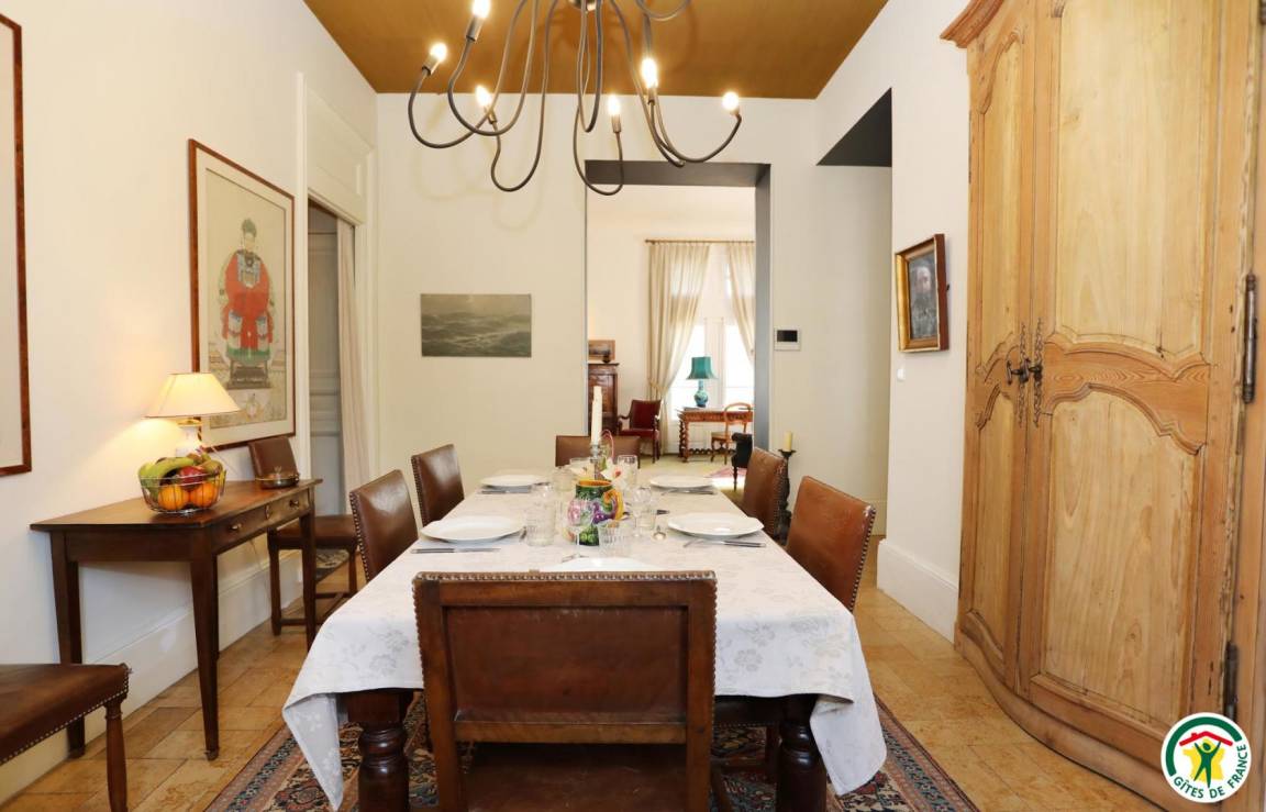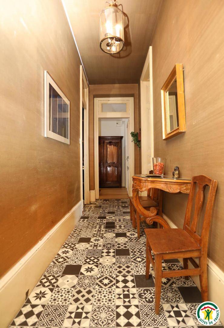 „Au départ surprise due à l'emplacement du gîte au 1° étage de cet immeuble de style avec sa belle cour privée et son portail massif d'époque.Mobilier de style et d'époque, belle décoration.Cuisine moderne très bien équipée. Belle vaisselle.3 grandes chambres toujours bien meublées. Bonne literie.2 SDB spacieuses et bien équipées.Propriétaires accueillants à notre écoute.Proximité du centre ville.“