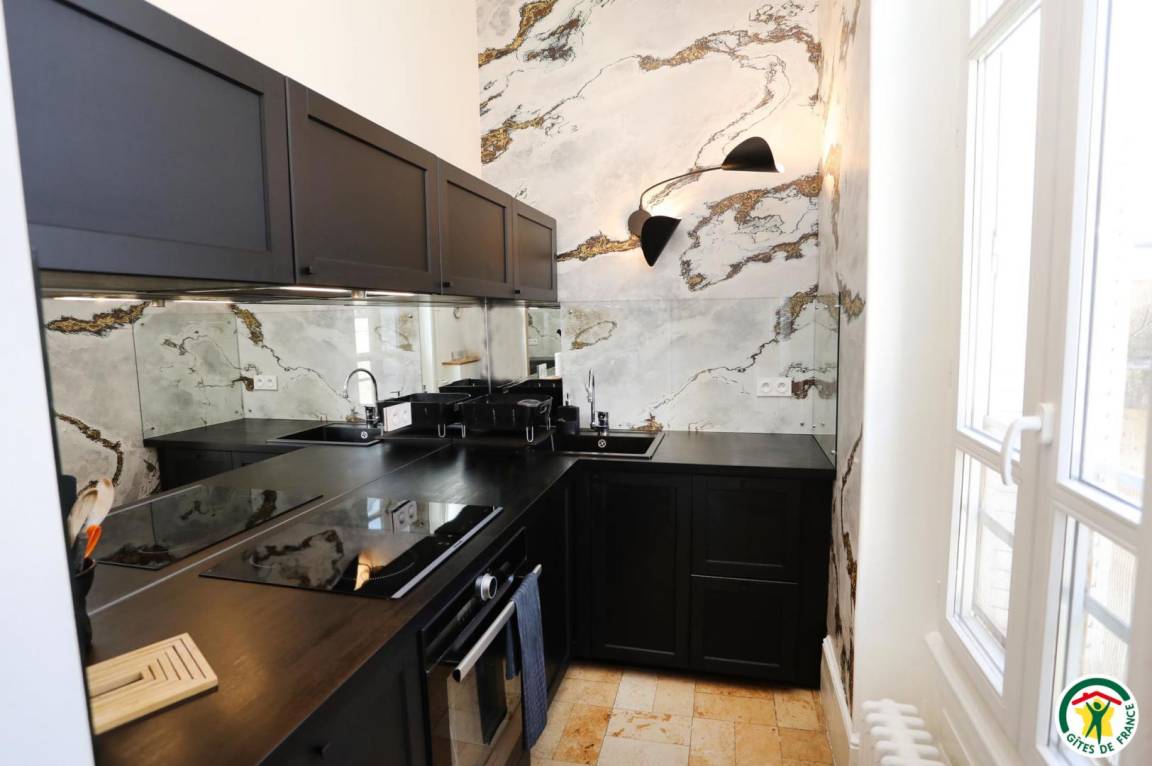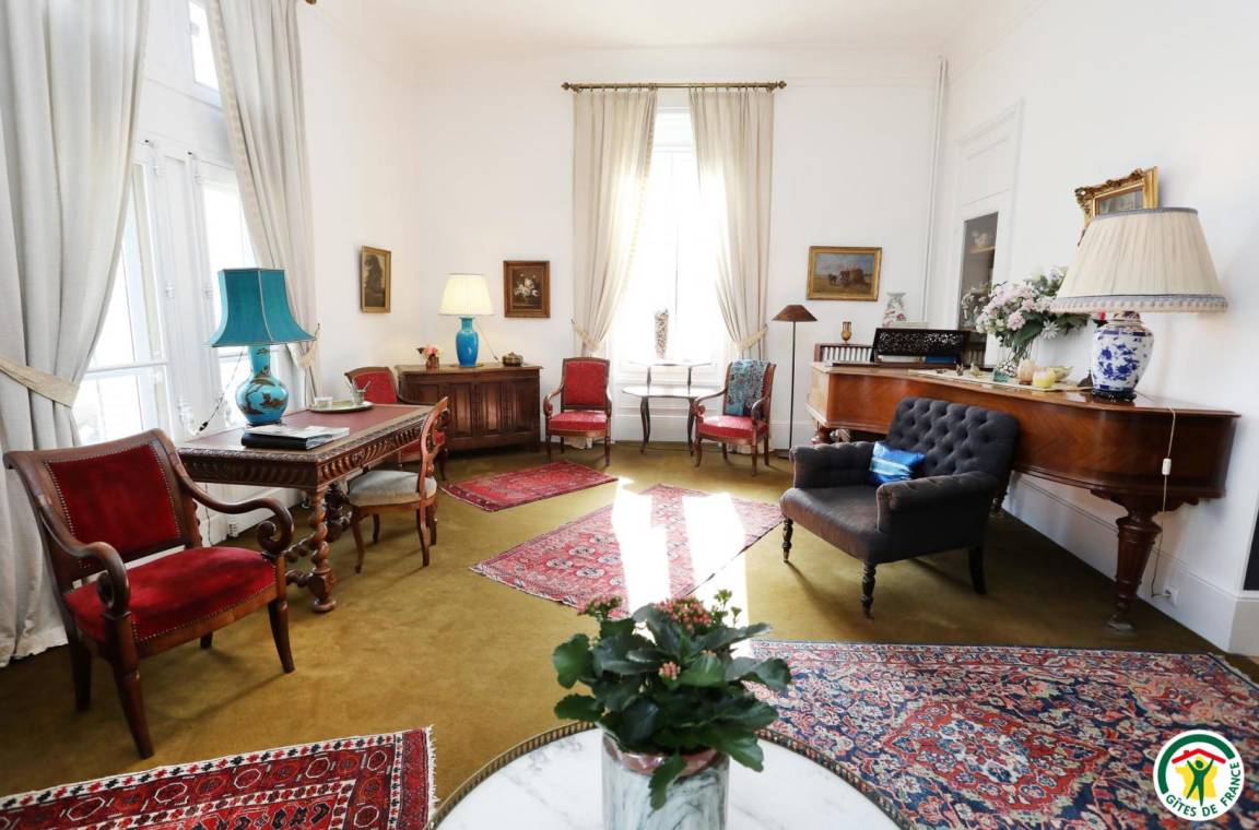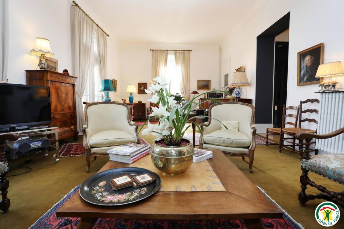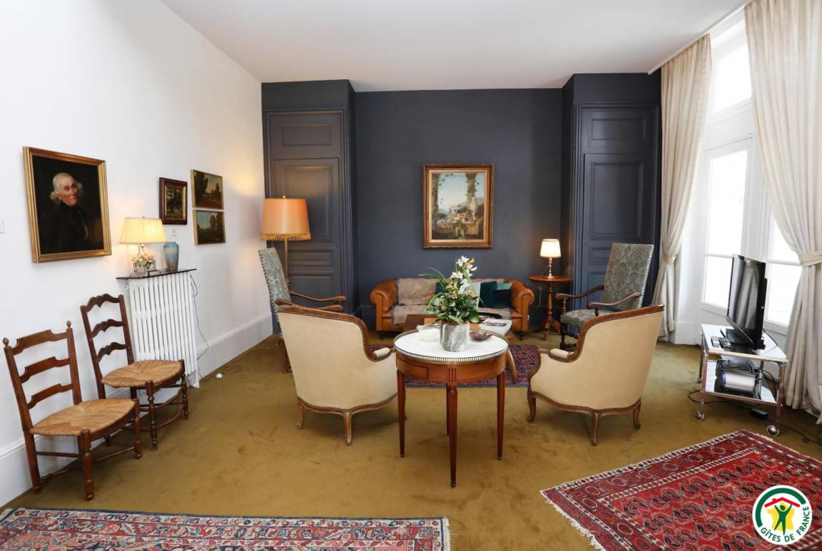 „Au départ surprise due à l'emplacement du gîte au 1° étage de cet immeuble de style avec sa belle cour privée et son portail massif d'époque.Mobilier de style et d'époque, belle décoration.Cuisine moderne très bien équipée. Belle vaisselle.3 grandes chambres toujours bien meublées. Bonne literie.2 SDB spacieuses et bien équipées.Propriétaires accueillants à notre écoute.Proximité du centre ville.“
