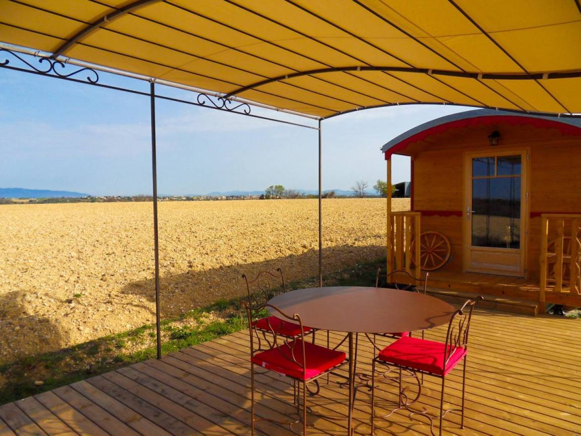 „Super séjour au milieu des lavandes. Très reposant. Quel bonheur de se réveiller avec le chant des cigales. La propriétaire est très gentille. La roulotte équipée de climatisation, douche, cuisine, canapé, terrasse. Tout était propre.“