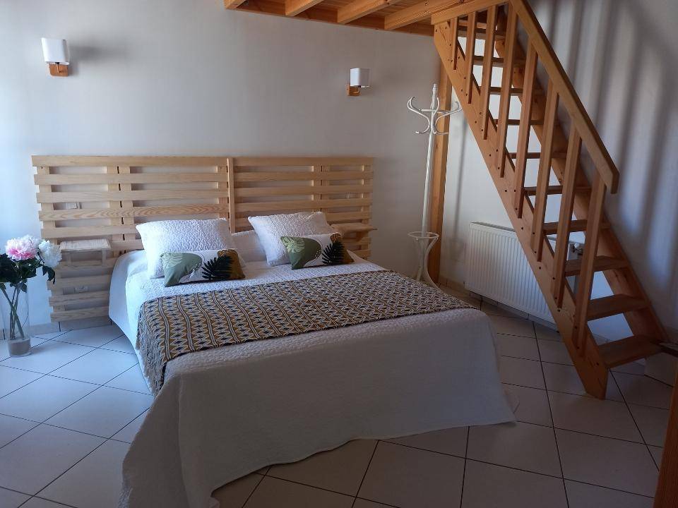 „Le gîte est conforme à la description, rien ne manque. Pour deux couples de motards comme nous, cette location était parfaite: Lits faits à notre arrivée, linge de toilette à disposition, chaque chambre dispose de sa salle de bain et un abri disponible pour stationner les motos. Autre avantage de cette location: La climatisation que nous avons bien apprécié après nos balades. Lieu calme et propriétaires accueillants (boissons fraîches et gâteau à notre arrivée), très réactifs. Un superbe séjour !“