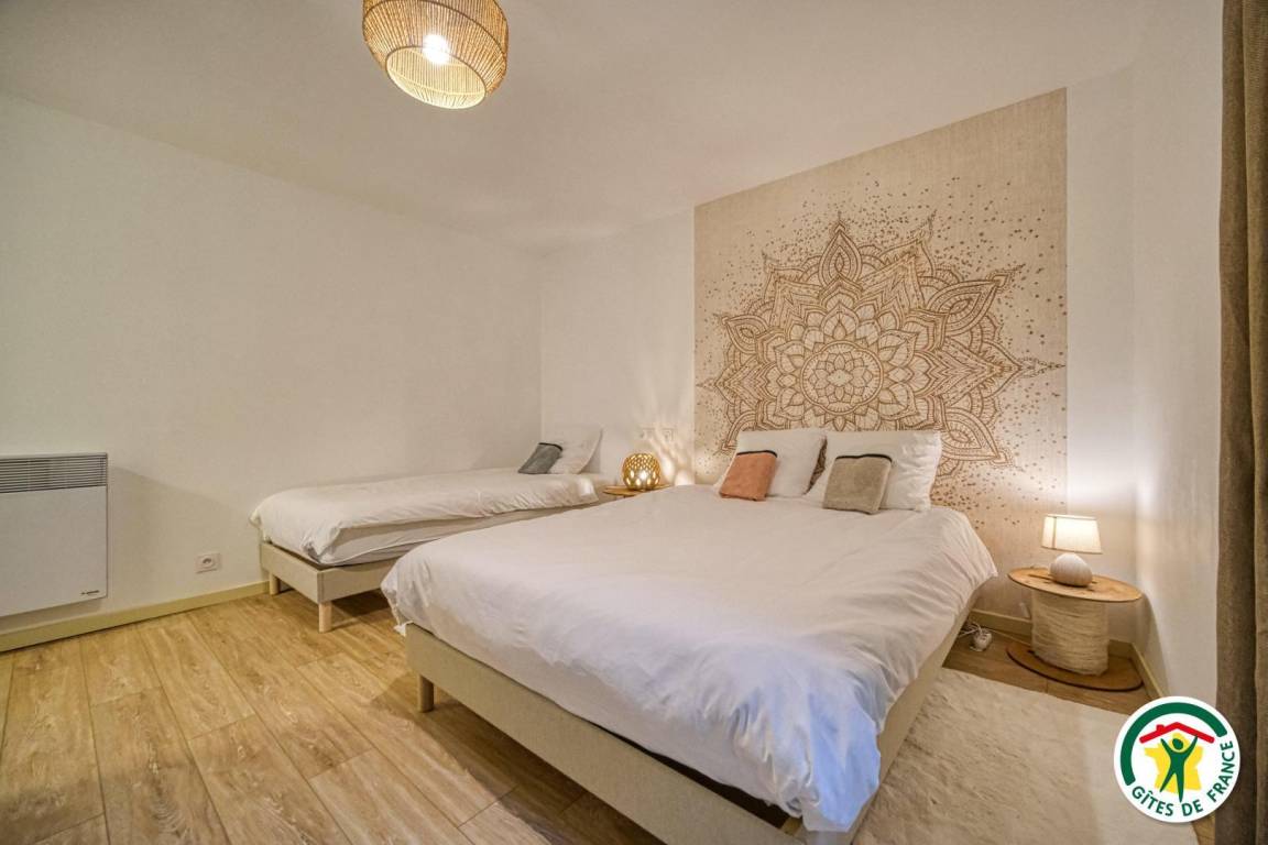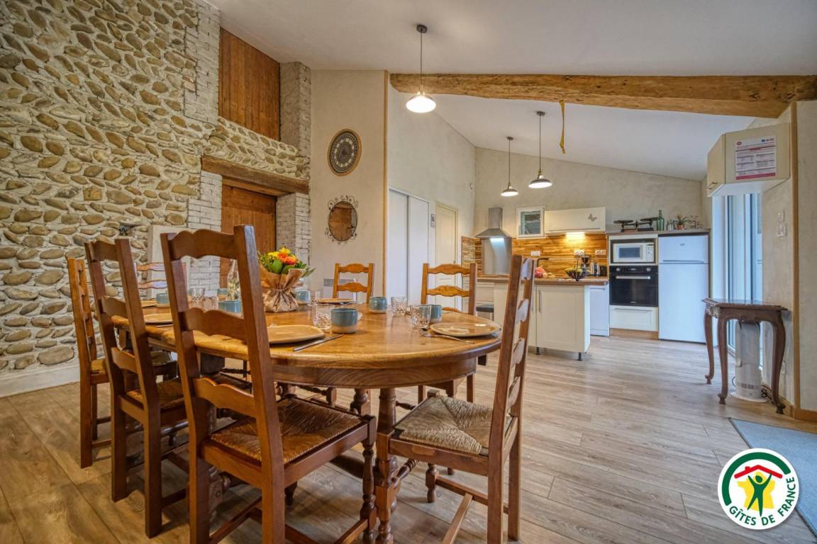 „Nous étions 5 (gîte version Platane - deux chambres) et avons grandement apprécié la table spacieuse et le coin salon véritablement prévu pour y passer des soirées qui durent...L'extérieur utilisable même par temps de pluie avec table de ping-pong, baby-foot et canapé a fini de nous séduire. Le prix enfin (fin mars) avec serviettes et ménage compris est très intéressant. Il y a de fortes chances que ce spot devienne notre lieu de pèlerinage !“