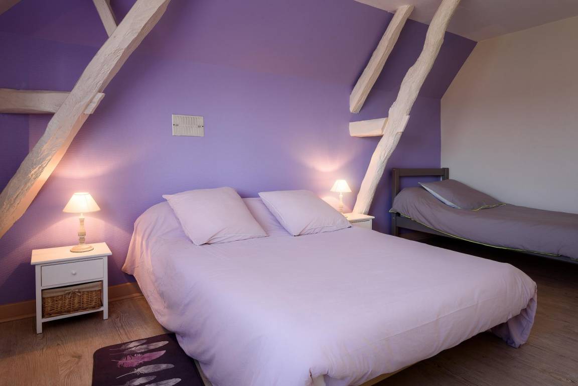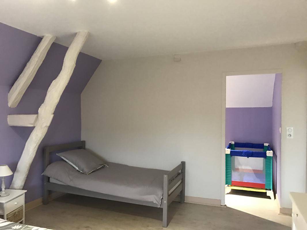 In einem alten Bauernhaus, 200 m vom Dorf entfernt, wurde das Haupthaus komplett als Ferienwohnung renoviert. Diese Vermietung ist ideal für Zusammenkünfte mit Familie oder Freunden, Sie werden zu jeder Jahreszeit die in ein Esszimmer umgewandelte Veranda mit Blick auf den kleinen Garten genießen und für etwas kühle Abende können Sie sich im Wohnzimmer am Feuer des Kamins entspannen. Erdgeschoss: Einbauküche, Veranda mit Essbereich, Wohnzimmer mit Kamin, 1 Schlafzimmer (1 Doppelbett), privates Badezimmer mit ebenerdiger Dusche, separates WC. Obergeschoss: Großer Treppenabsatz (Einzelschlafcouch), 2 Schlafzimmer (1 Doppelbett), 1 Schlafzimmer (1 Doppelbett, 1 Einzelbett) und ein zusätzliches Zimmer ohne Fenster im Anbau mit 1 Einzelbett und Kinderbett, Badezimmer (Bad/WC) . Ölzentralheizung inklusive. Bettwäsche wird gestellt. Eine solche. portable Karte auf Anfrage. Waschküche mit Waschmaschine und Trockner. Gemeinsamer Innenhof mit Parkplatz. Grünanlage. Étang de Goule (Strand, Wasser
