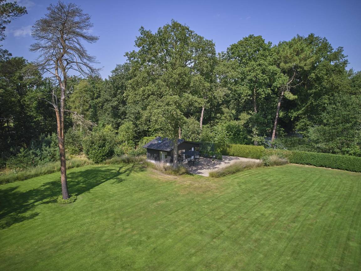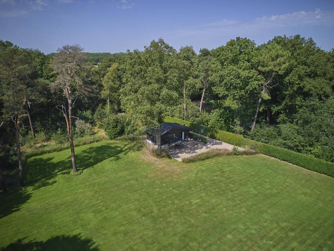 Dieses schöne Waldhaus würde genau in ein Wohnmagazin passen. Die Vorderseite des Grundstücks grenzt an die Hauptstraße zwischen Valkenswaard und Belgien