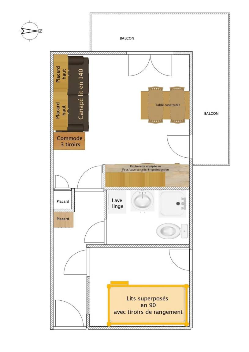Die Residenz Beltegeuse befindet sich im Zentrum von Valloire, 280 m von der Seilbahn Crêt de la Brive entfernt. Ortsplan Nr. A4. Fläche von ungefähr 23 m². 1te Etage. Orientierung : Nord, West, Nord-West. Wohnzimmer mit Klappschlafcouch (140*190), TV. offener Schlafbereich mit 2 Stockbetten (90*190). Kochnische mit Backofen, Geschirrspülmaschine, Mikrowellenherd, 3 Induktionsherdplatten, Kühlschrank. Waschräume mit Dusche, Waschmaschine, Haartrockner, WC. Balkon mit Gartentisch und -stühle. Die oberen Betten sind nicht für Kinder unter 6 Jahren geeignet.