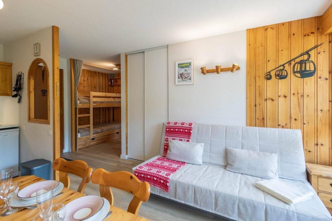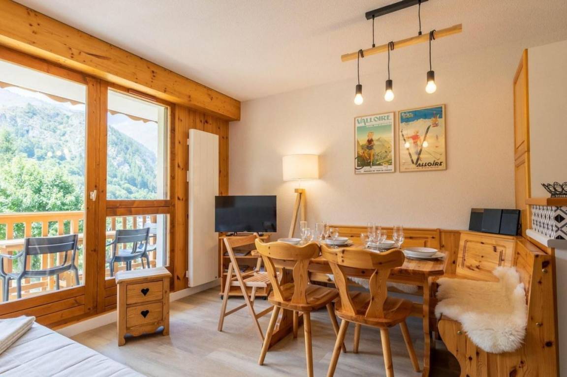 Das Chalet Arvette liegt im Ferienort Valloire, im Weiler Pontet. Das Zentrum von Valloire, die Geschäfte und die Aktivitäten liegen 250 m vom Chalet entfernt. Die Wanderwege befinden sich 250 m vom Gebäude entfernt. Die Freizeiteinrichtungen (Schwimmbad, Eisbahn, SPA, Valform, Tennis) liegen 700 m von der Wohnung entfernt. Fläche von ungefähr 35 m². 4te Etage. Orientierung : Süd, West. Wohnzimmer mit Klappschlafcouch (140*200). Schlafzimmer mit Doppelbett (160*200). offener Schlafbereich mit 2 Stockbetten (80*190). Kochnische mit Kaffeemaschine (Nespresso), Backofen, Geschirrspülmaschine, Mikrowellenherd, 4 Glaskeramikkochfelder, Kühl-Gefrier-Kombination. Badezimmer. separates WC. Kleiner Balkon. Waschmaschine. Die oberen Betten sind nicht für Kinder unter 6 Jahren geeignet.