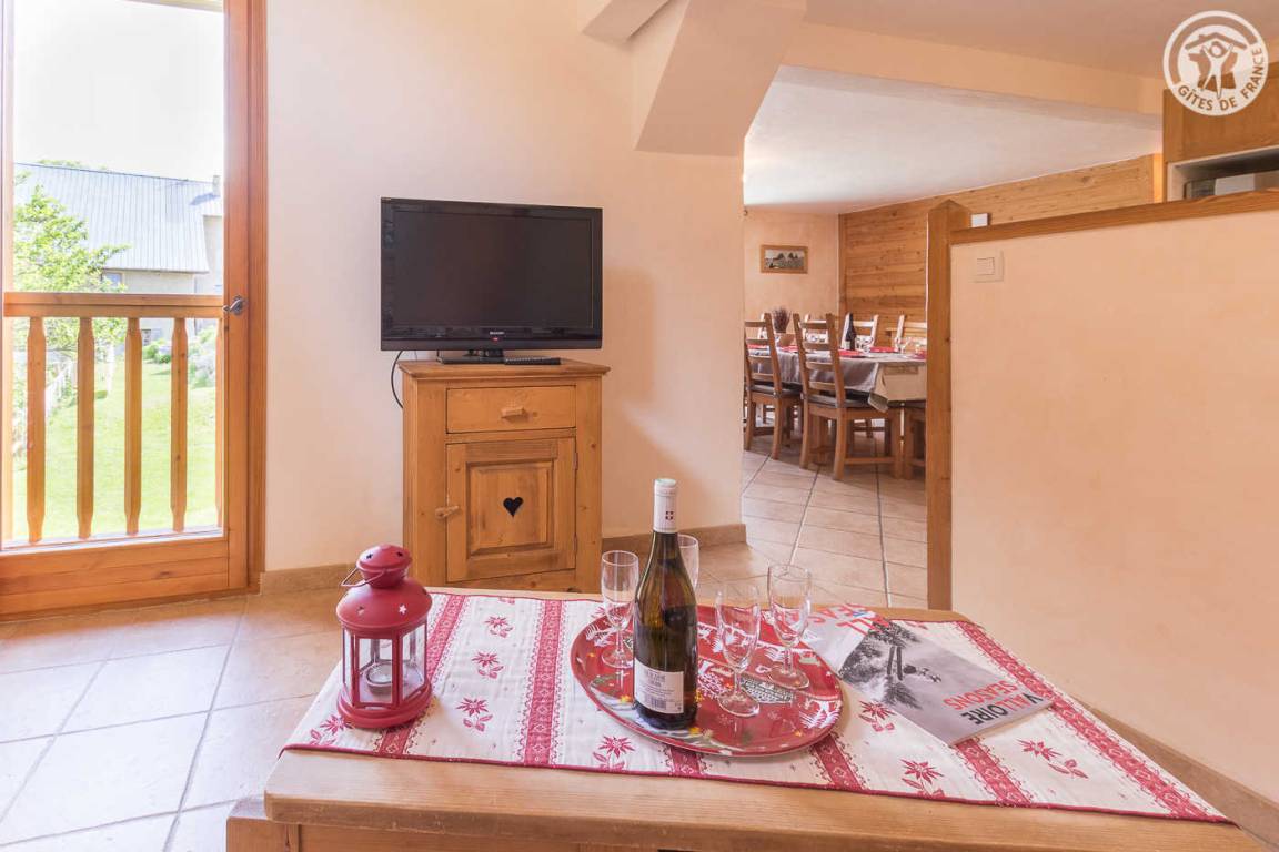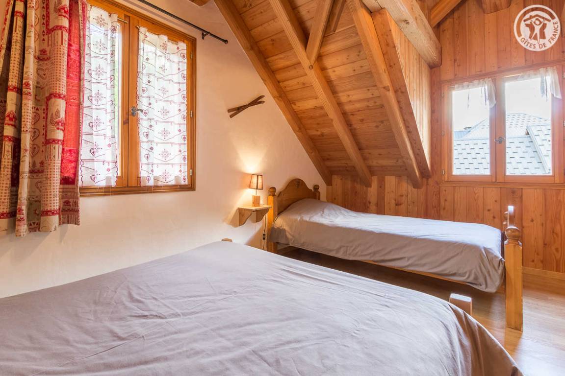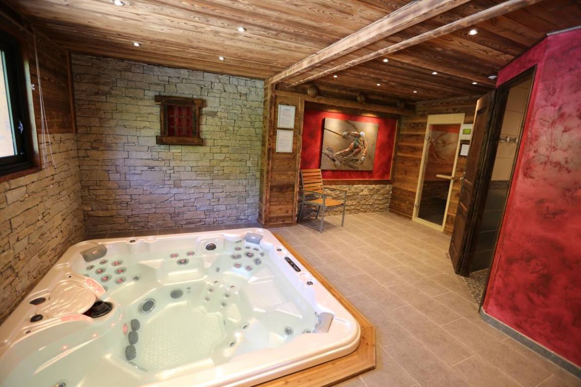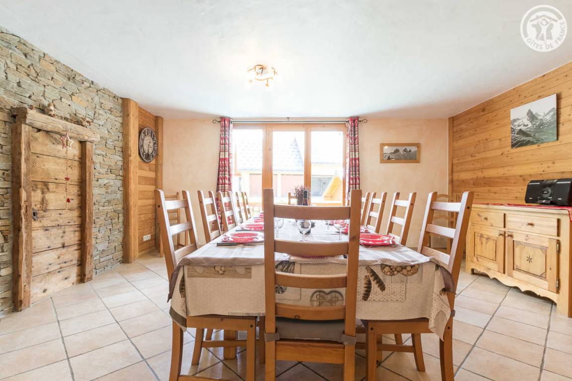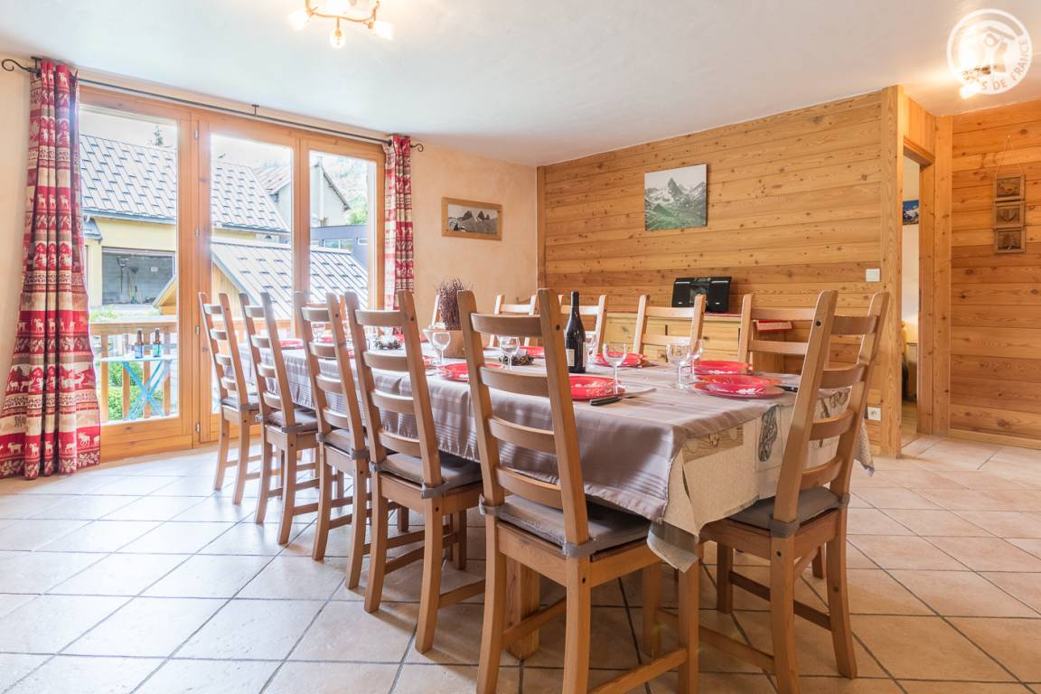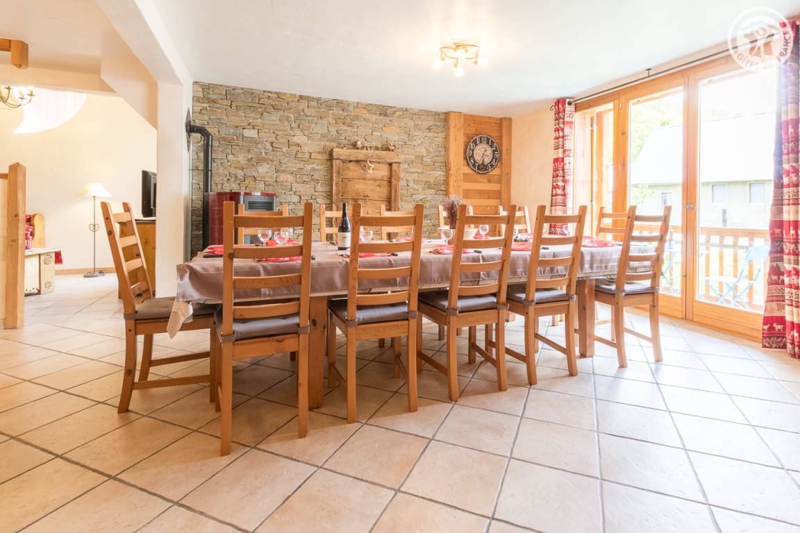 „Les points négatifs: Gîte pas très propre à notre arrivée, les sols n'avaient certainement pas été lavés. La vaisselle n'était pas très propre et certains ustensiles en mauvais état comme l'auto-cuisseur (couvercle HS). Le four était sale ainsi que le service à raclette non nettoyé (restes de fromage). Pour 12 personnes, le frigo est un peu petit, la plaque de cuisson gros feu pas très efficace. Le balcon est vraiment petit. Les photos sur le site mettent bien en valeur le gîte (félicitations au photographe), en réalité un peu déçu. Manque de support pour faire sécher les vêtements de Ski. Manque de réactivité de la propriétaire lorsque nous avons signalé le manque de propreté du gîte. Négociation accepté malgré tout pour le ménage fin de séjour, le tarif à 250€ nous a paru exorbitant, à ce prix là le logement aurait dû être vraiment propre !Les points positifs: 6 passes navette offerts par les propriétaires, la navette est à 100m, très pratique pour emmener les enfants aux cours de ski. L'espace jacuzzi est agréable même si peu utilisé (partagé avec les 2 autres gîte suivant planning).Le local à ski en bas avec sèche chaussures est plutôt fonctionnel en dehors des marches glissantes. Le poêle à granulés, appréciable pour faire sécher les vêtements de ski. Parking privé et garage à côté du gîte.“