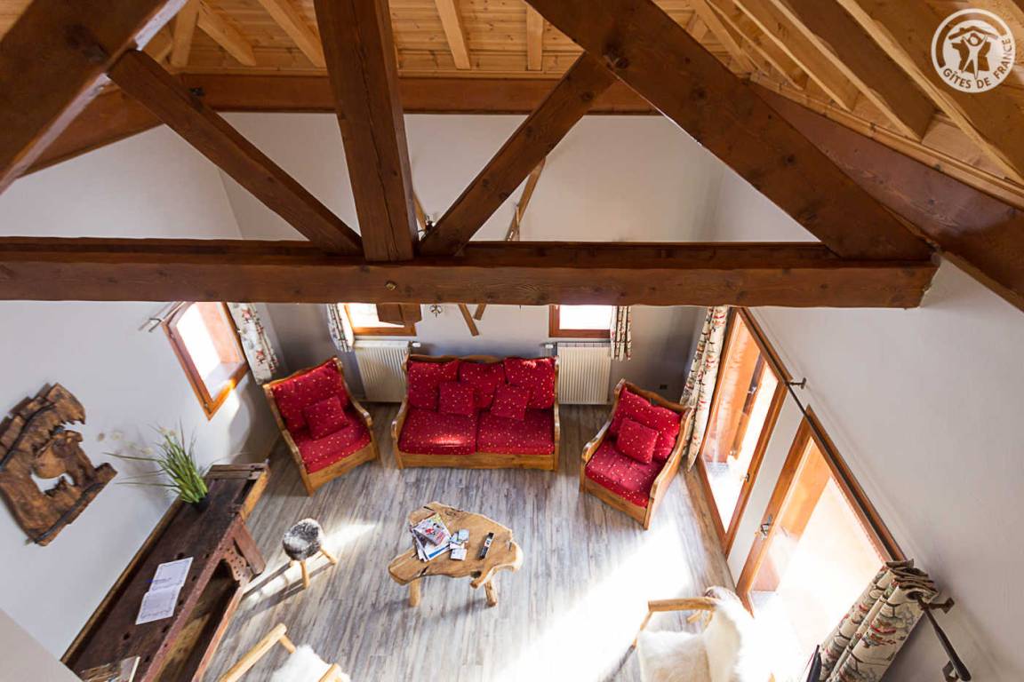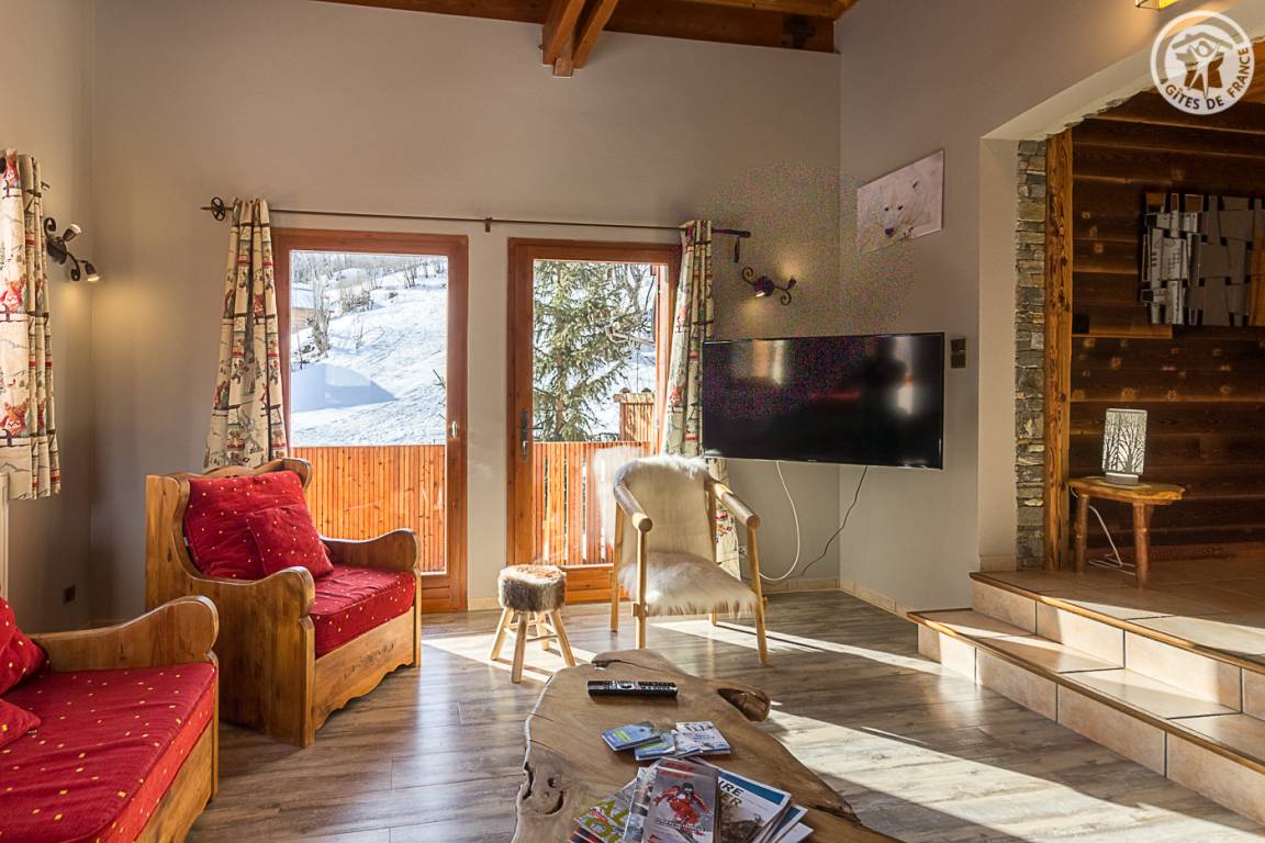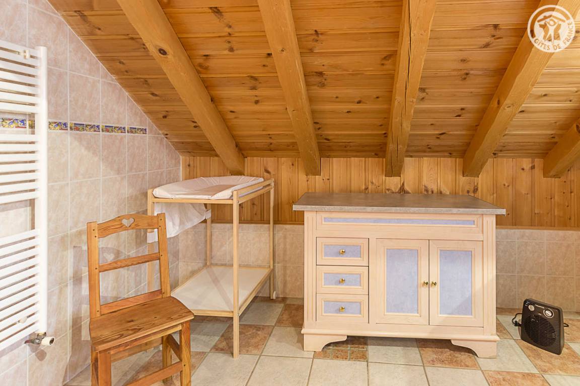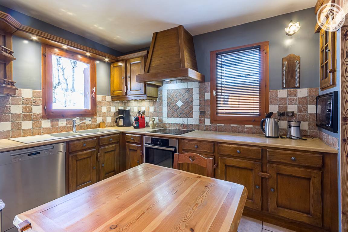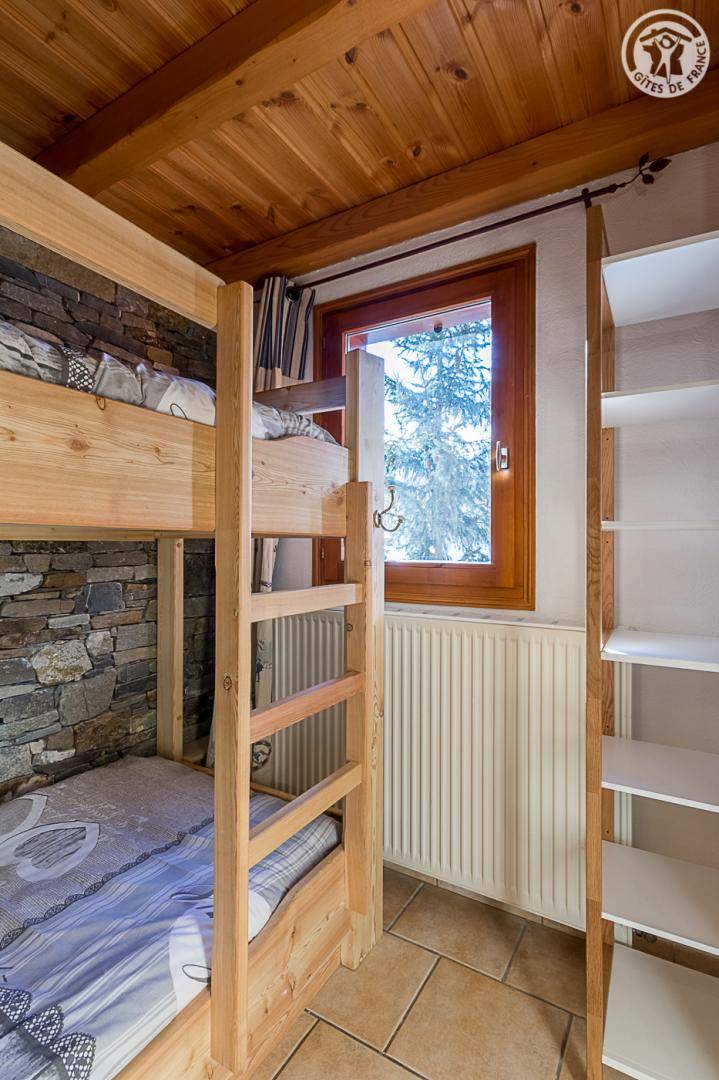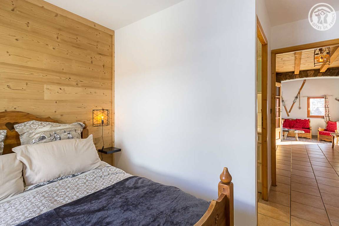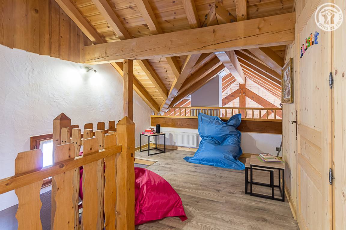 Freistehendes Haus auf 2 Ebenen. Erdgeschoss: Eingang, Waschküche. 1. Stock: Wohnzimmer, Wohnküche, 1 Schlafzimmer (1 Doppelbett) mit Bad (Dusche) und Balkon, 1 Schlafzimmer in der Kabine (2 x 2 Etagenbetten), separates WC. 2. Etage: Zwischengeschoss mit Kinderspielbereich, 2 Schlafzimmer mit Balkon (2 Einzelbetten / 1 Doppelbett 160 x 200 cm), Badezimmer (Badewanne und WC). Skiraum mit elektrischem Schuhtrockner (im Sommer Raum für Fahrräder und 2 Motorräder).