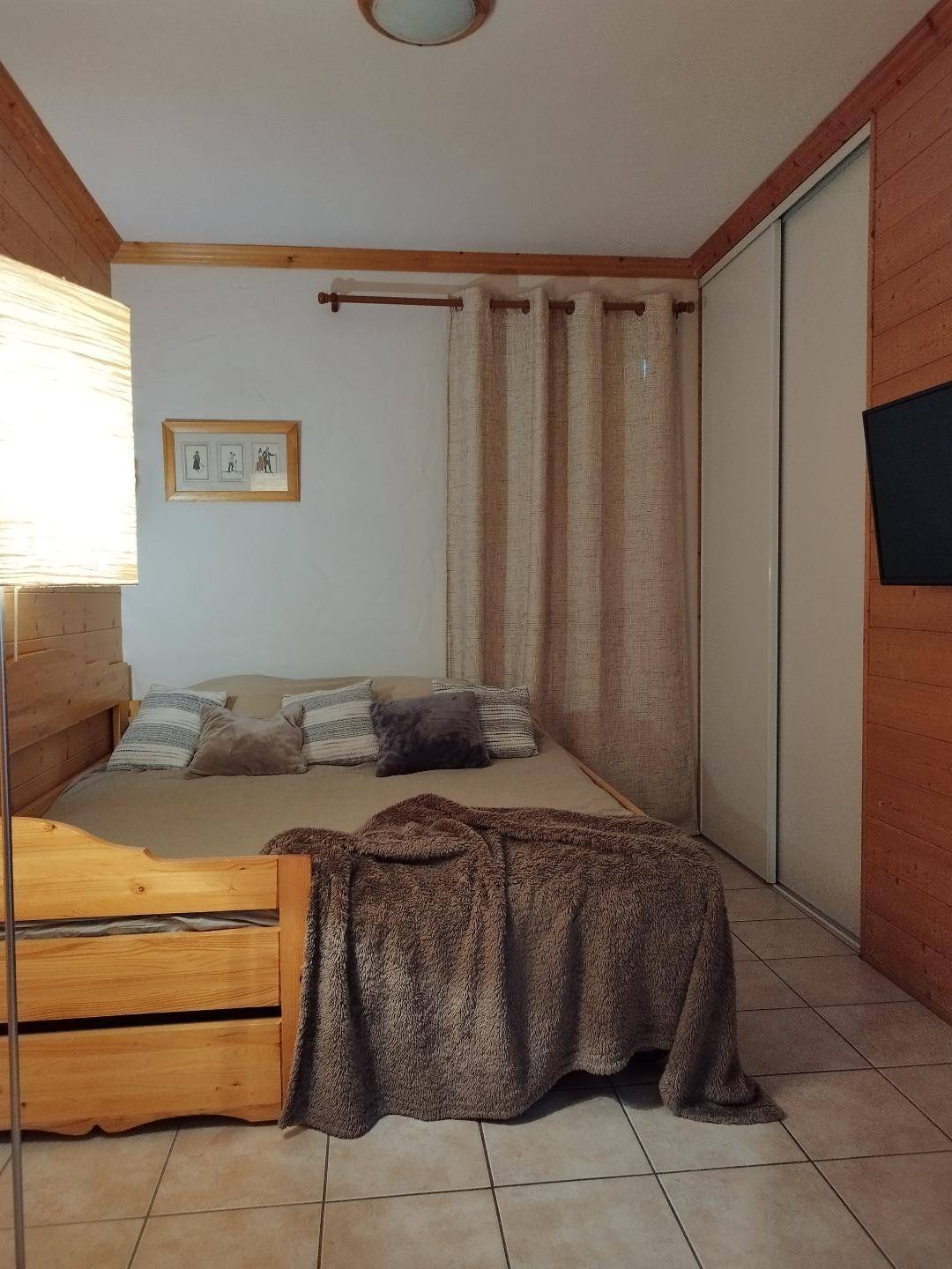 Fläche von ungefähr 53 m². Etage -2. Orientierung : Süd. Wohnzimmer mit Ausziehschlafcouch für 2 Personen (80). Schlafzimmer mit Doppelbett (140). Schlafzimmer mit Einzelbett (80). offener Schlafbereich mit 2 Stockbetten (80). Kochnische mit Backofen, kleiner Backofen mit Mikrowellenfunktion, Geschirrspülmaschine, 4 Glaskeramikkochfelder, Kühlschrank. Badezimmer mit WC. Waschräume. separates WC. Terrasse mit Grillrost, . Waschmaschine. Die oberen Betten sind nicht für Kinder unter 6 Jahren geeignet.