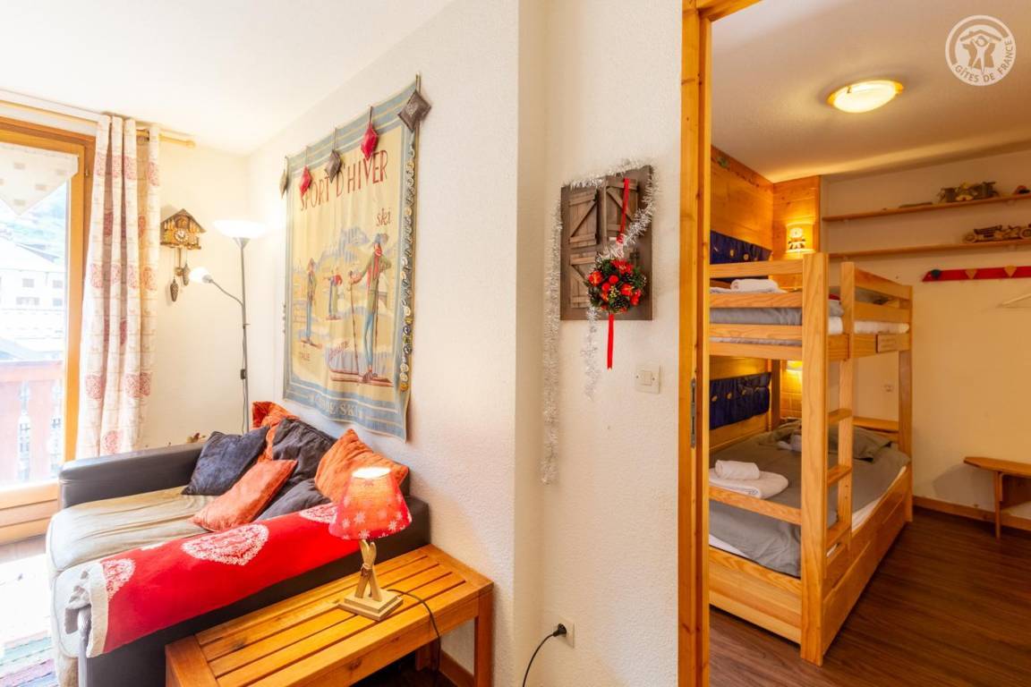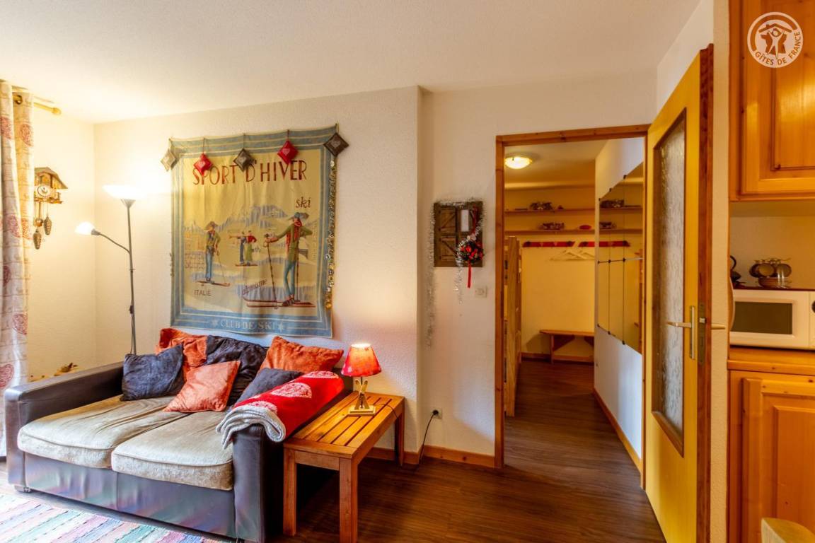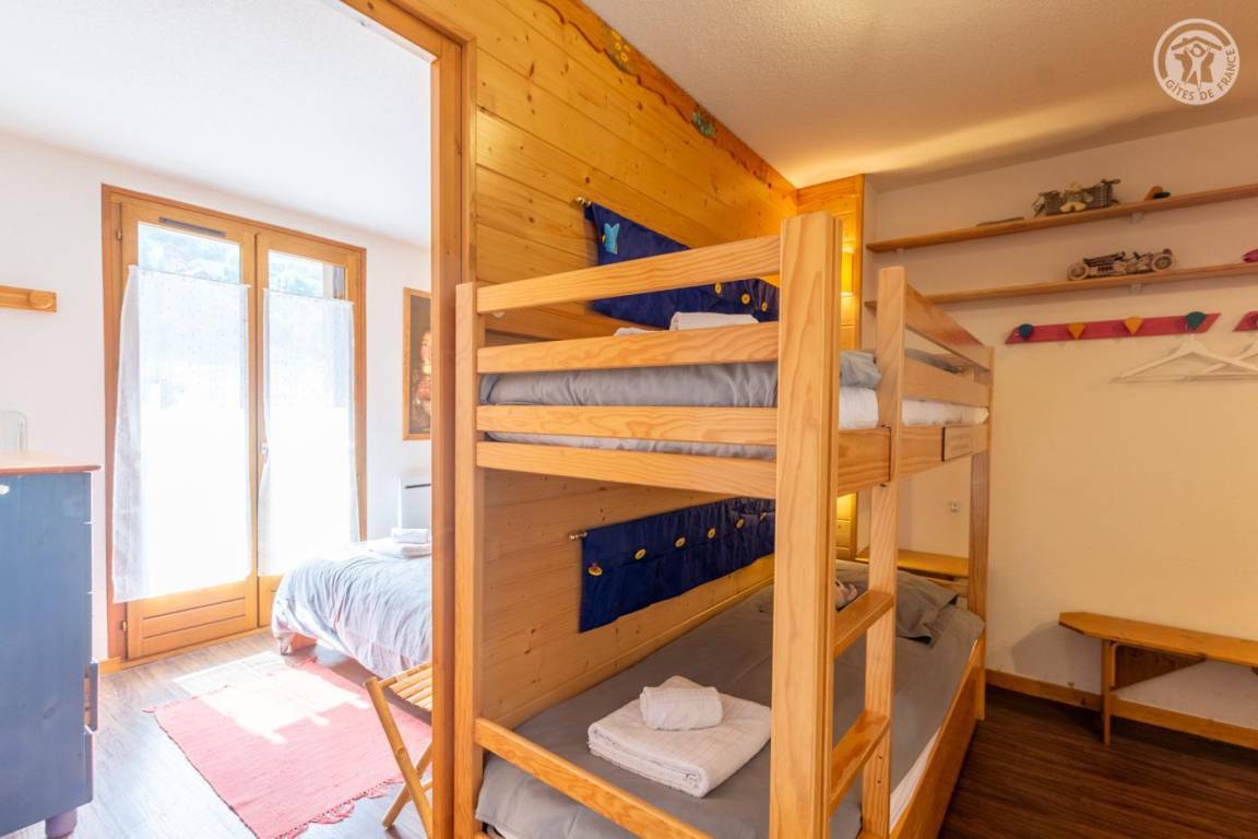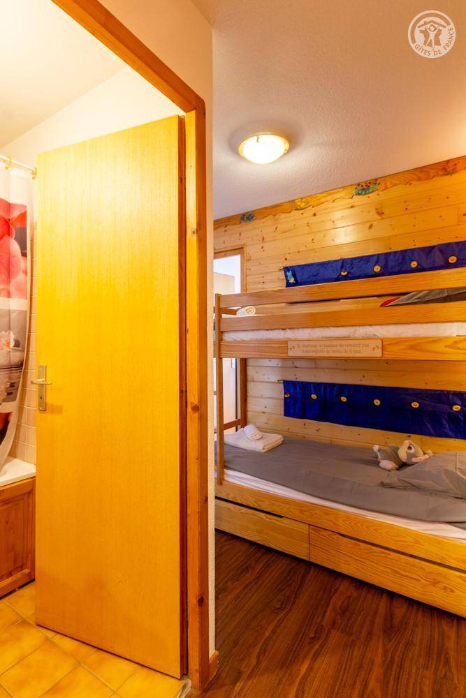 Wohnung im 3. Stock einer Residenz mit mehreren Touristenunterkünften. Eingang, Bergecke (2 Einzel-Etagenbetten 90x190 cm), 1 Schlafzimmer (1 Doppelbett 140x190 cm), Küche, Wohnzimmer, Aufenthaltsraum mit Zugang zu einem Balkon, separates WC, Badezimmer (Badewanne). Zwei private Parkplätze 200 Meter von der Wohnung entfernt.