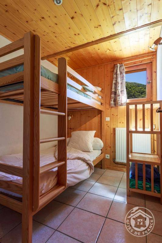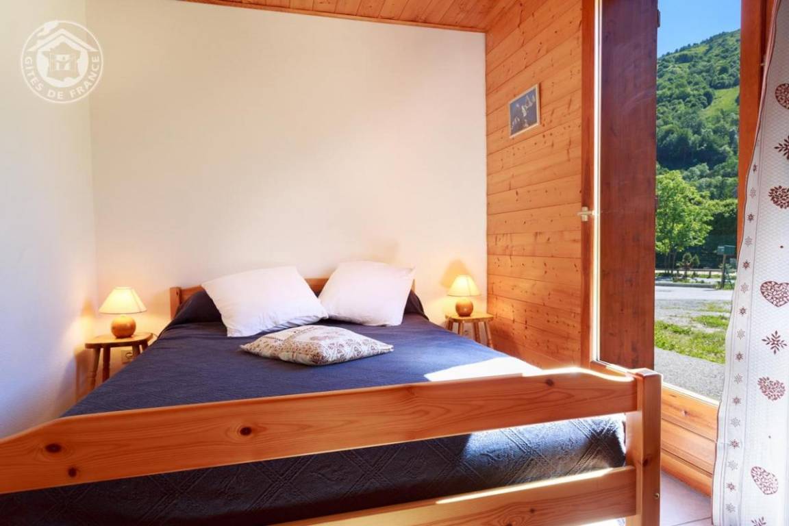 2 Ferienhäuser und Unterkunft im Haus des Eigentümers. Erdgeschoss (unabhängiger ebenerdiger Zugang von außen): Wohnzimmer-Küchen-Lounge-Bereich, 1 Schlafzimmer (1 Doppelbett), 1 Kabinenschlafzimmer (2 Einzel-Etagenbetten), Badezimmer (Dusche), separates WC. Private Terrasse. Gemeinsames Land. Shuttle vor dem Ferienhaus zum Ortszentrum und Abfahrt von den 400 m entfernten Pisten.