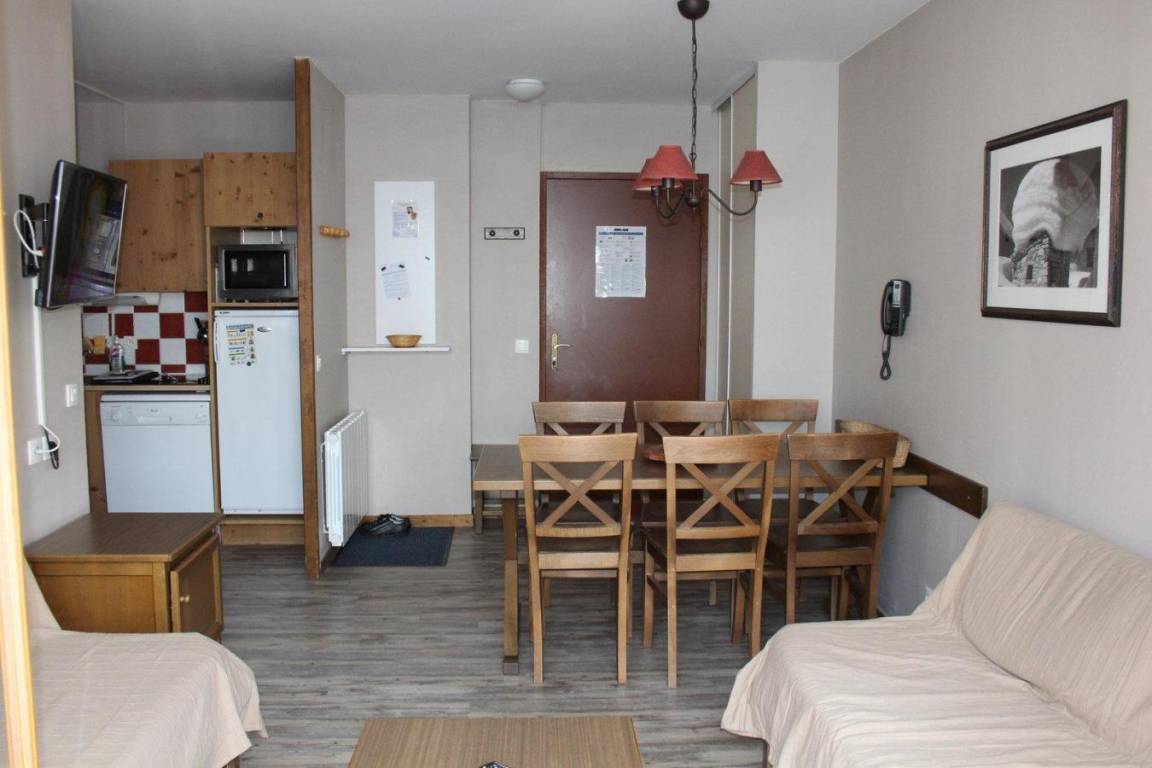 Die Chalets Valoria wurden 2004 gebaut und liegen im Weiler Charbonnieres, 700 m vom Zentrum von Valloire und dem Kindergarten entfernt. Geschäfte liegen 300 m von den Chalets entfernt. Das Unterhaltungsviertel (Schwimmbad, Spa, Tennis...) ist 1 km entfernt. Sie profitieren von der Ruhe des Viertels. Fläche von ungefähr 39 m². 3te Etage. Orientierung : Nord. Wohnzimmer mit 2 Einzelbetten (2x70*190). Schlafzimmer mit Doppelbett (140*190). Schlafzimmer mit 2 Stockbetten (2x70*190). Kochnische mit Mikrowellengrill, Geschirrspülmaschine, 4 Glaskeramikkochfelder, Kühlschrank. Badezimmer mit Badewanne. separates WC mit Waschbecken. Balkon. Die oberen Betten sind nicht für Kinder unter 6 Jahren geeignet.