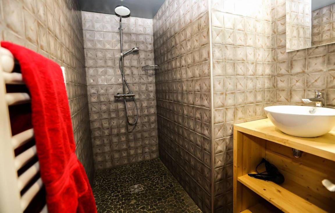 Fläche von ungefähr 130 m². Niveau 0 : Wohnzimmer. Küche mit Wasserkocher, Kaffeemaschine, Backofen, Toaster, Geschirrspülmaschine, Mikrowellenherd, Glaskeramikkochfelder, Kühl-Gefrier-Kombination. Balkon. Niveau -2 : Schlafzimmer mit Doppelbett (160x200), Badezimmer. Schlafzimmer mit 2 Einzelbetten. Schlafzimmer mit Doppelbett (160x200). Waschküche. separates WC. Badezimmer mit Badewanne. Garten. Niveau -1 : Schlafzimmer mit Doppelbett (160x200). Schlafzimmer mit 2 Stockbetten. separates WC. Waschräume mit italienische Duschkabine. Die oberen Betten sind nicht für Kinder unter 6 Jahren geeignet.