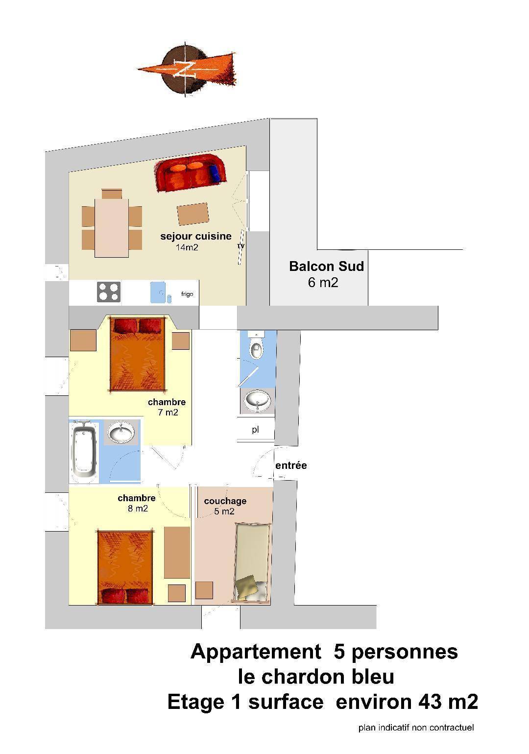 Die Residenz Le Chardon Bleu liegt im Herzen des Ferienortes Valloire, in der Nähe der Geschäfte, 180 Meter von den Wanderwegen und der Seilbahn des Crêt de la Brive entfernt. Ortsplan Nr. B5. Fläche von ungefähr 45 m². 1te Etage. Orientierung : Süd. Wohnzimmer. 2 Schlafzimmer mit Doppelbett (140*200). mit Backofen, Geschirrspülmaschine, Mikrowellenherd, 4 Glaskeramikkochfelder, Kühlschrank. offener Schlafbereich mit Einzelbett (90*200). Badezimmer mit Haartrockner. separates WC. Balkon. Waschmaschine (commun pour 2 appartements), Wäschetrockner (commun pour 2 appartements).