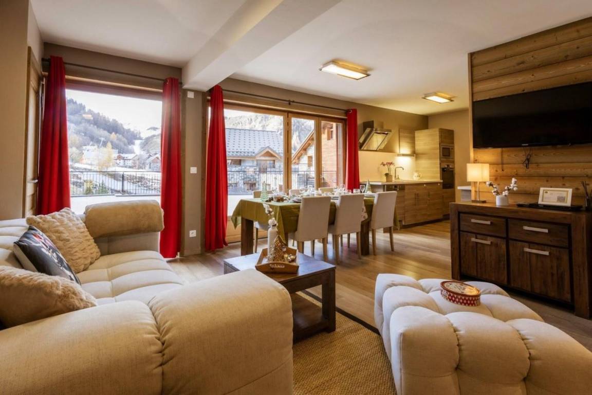 Die Chalets d'Adrien wurden 2011 gebaut. Diese Residenz befindet sich am Eingang von Valloire. Familienresort, bietet eine Vielzahl von Aktivitäten. Tradition, Atmosphäre, Freundlichkeit und Entspannung stehen hier im Mittelpunkt. Fläche von ungefähr 82 m². 1te Etage. Orientierung : Süd. Wohnzimmer mit Klappschlafcouch (140*200). 2 Schlafzimmer mit Doppelbett (160). Schlafzimmer mit 2 Einzelbetten. Kochnische mit Backofen, Geschirrspülmaschine, Mikrowellenherd, Glaskeramikkochfelder, Kühl-Gefrier-Kombination. separates WC. Badezimmer mit Badewanne, Waschmaschine, Wäschetrockner. 2 Waschräume mit Dusche, WC. Terrasse.
