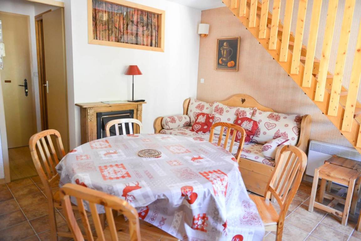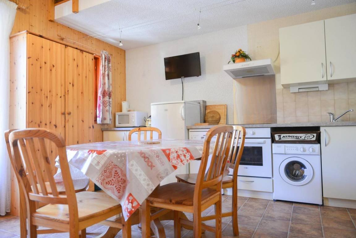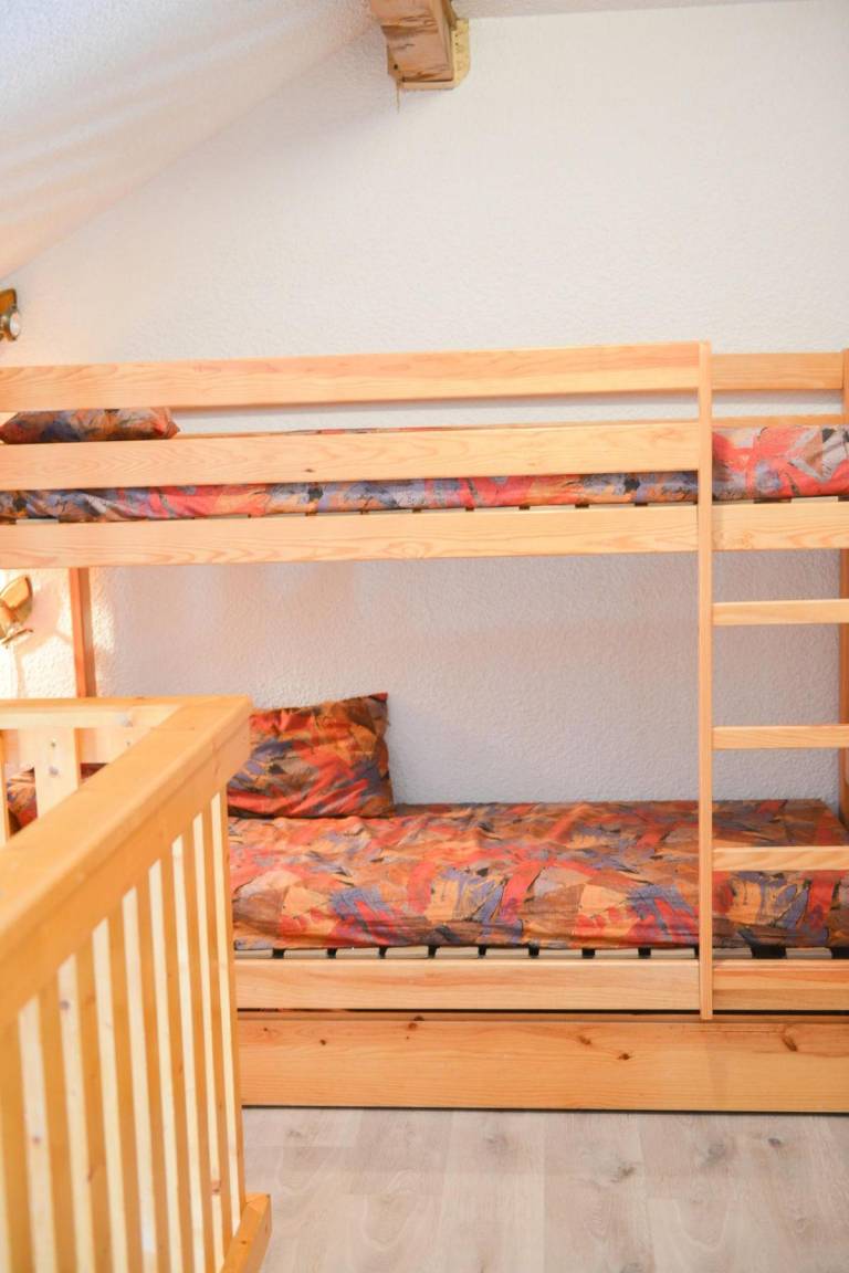 Fläche von ungefähr 41 m². 3te Etage. Orientierung : West. Niveau 0 : Wohnzimmer. offener Schlafbereich mit Ausziehschlafcouch für 2 Personen (2*90*190). Kochnische mit Kaffeemaschine (filtre), Backofen, Waschmaschine, Geschirrspülmaschine, Mikrowellenherd, 4 elektronische Herdplatten, Kühlschrank. Waschräume mit Dusche, WC. separates WC. Balkon. Niveau 1 : Zwischengeschoss mit 2 Stockbetten (90*190). Schlafzimmer mit 2 zwei Einzelbetten (80*190). Die oberen Betten sind nicht für Kinder unter 6 Jahren geeignet.
