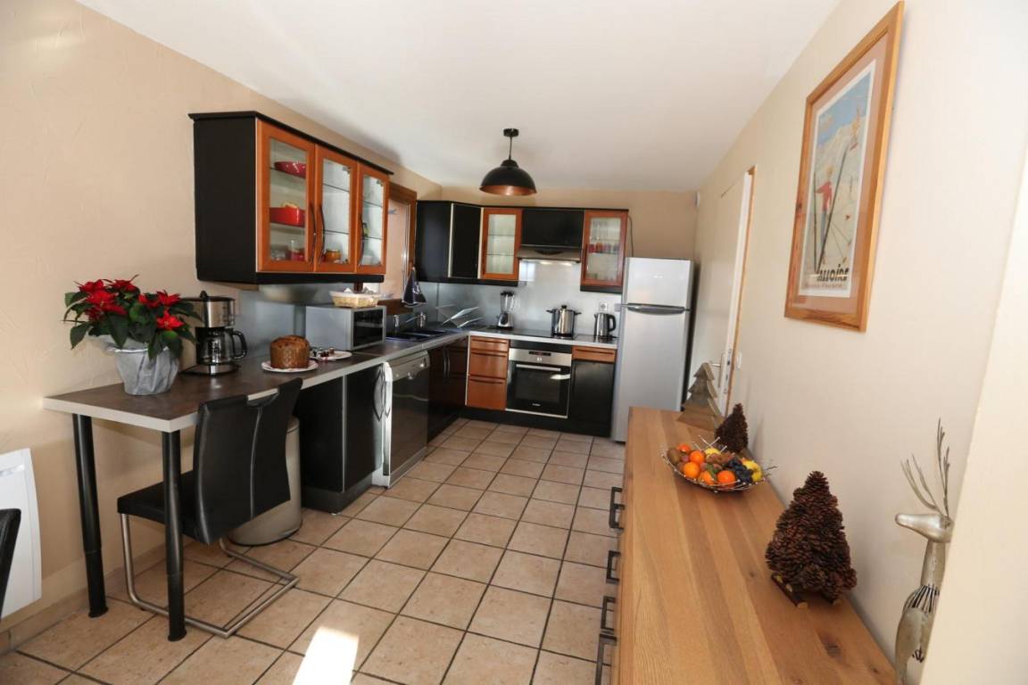 Fläche von ungefähr 91 m². 1te Etage. Orientierung : Süd. Niveau 0 : Wohnzimmer mit , . Schlafzimmer mit Doppelbett (160), Einzelbett (90), . mit Backofen, Geschirrspülmaschine, Mikrowellenherd, 4 Glaskeramikkochfelder, Kühlschrank. separates WC. Garten. Waschmaschine, Wäschetrockner. Niveau 1 : Schlafzimmer mit Doppelbett (160), Einzelbett (90). Schlafzimmer mit 2 Einzelbetten (90), 2 Stockbetten (90). Zwischengeschoss mit 2 Einzelbetten (90). Waschräume mit WC. Balkon. Die oberen Betten sind nicht für Kinder unter 6 Jahren geeignet.
