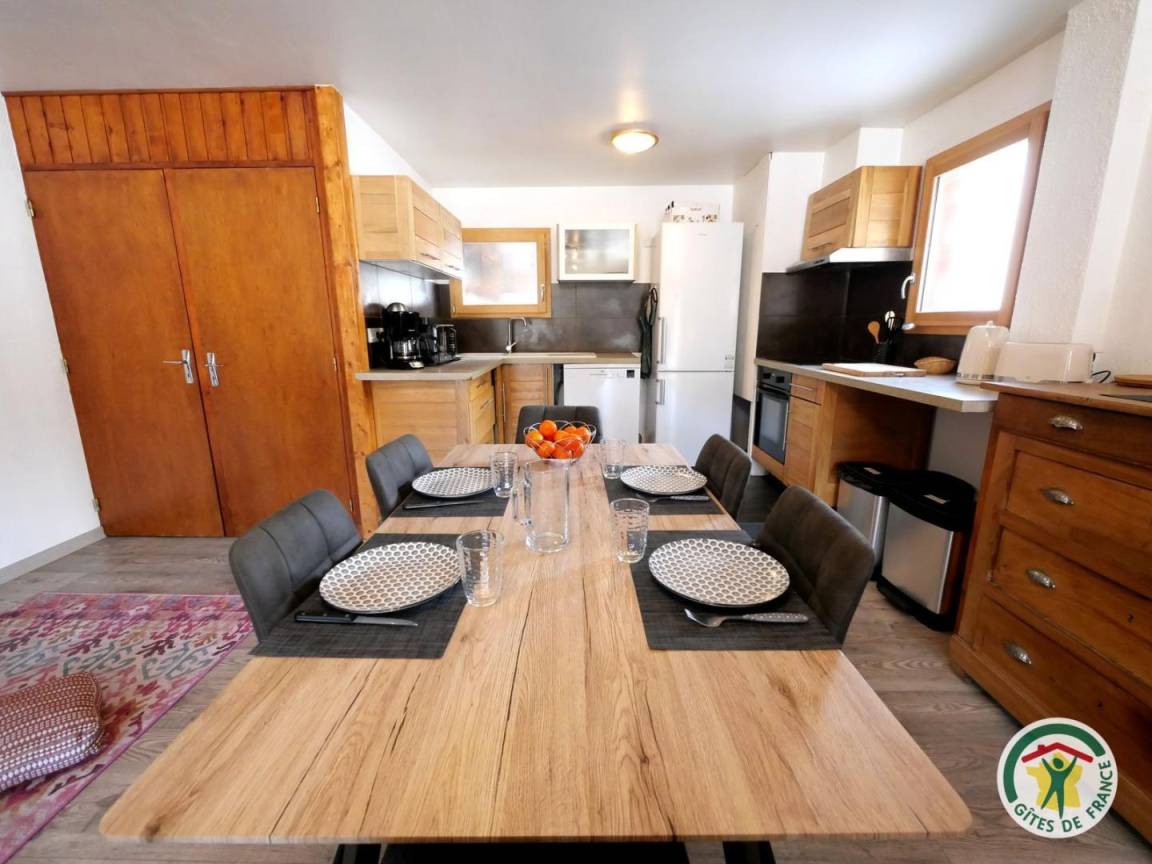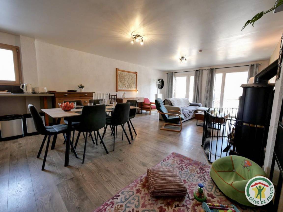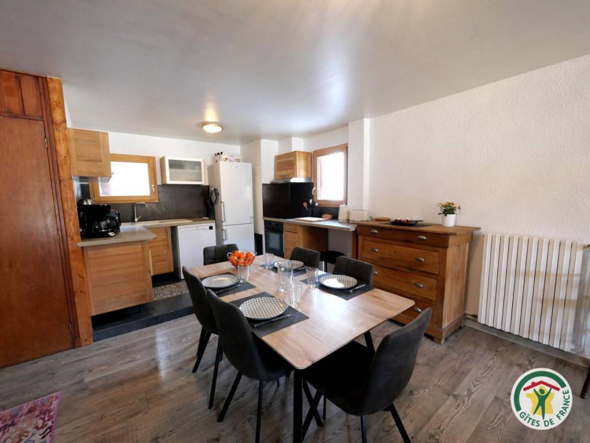 „Le gîte bénéficie d'une grande salle de vie/cuisine ce qui est très agréable. Situé à 10min à pieds du village et très proche du ski de fond et maison du parc des Écrins. Je recommande !“