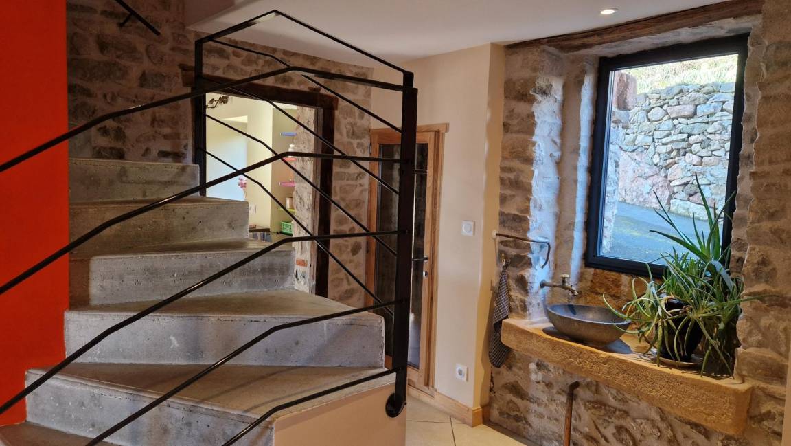 „Très beau gîte admirablement bien restauré niché en pleine nature avec une superbe vue. Très bien équipé. 4 grandes chambres 3 salles d'eau à l'étage. Nous avons passé un excellent séjour“