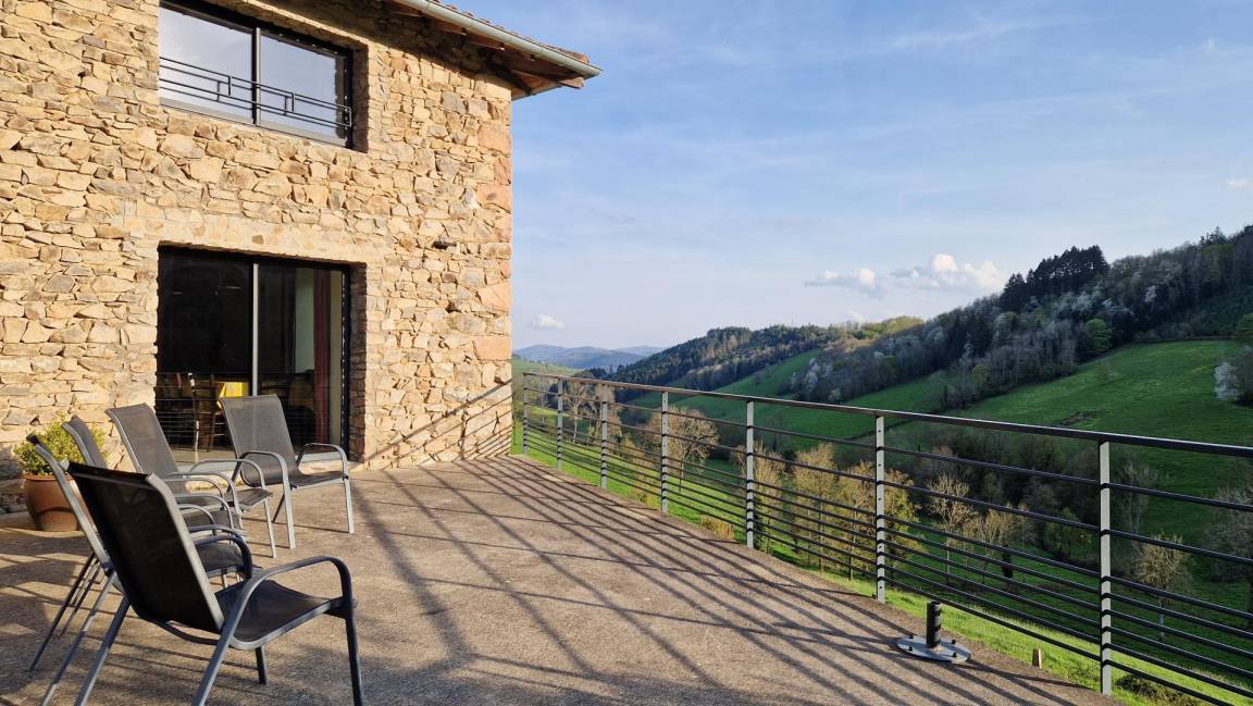 „Lieu idéalement situé proche de Tarare et de sa Gare. Équipements et confort au top. Salle de travail magnifique avec vue sur la vallée“