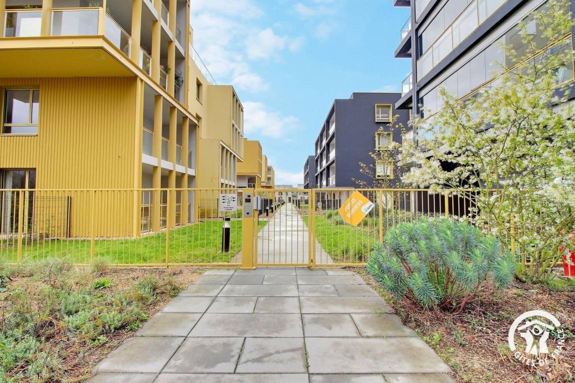 Die Wohnanlage ist komplett gesichert (Außenanlagen werden derzeit gestaltet, auf der Balkonseite befindet sich ein Gebäude im Bau).