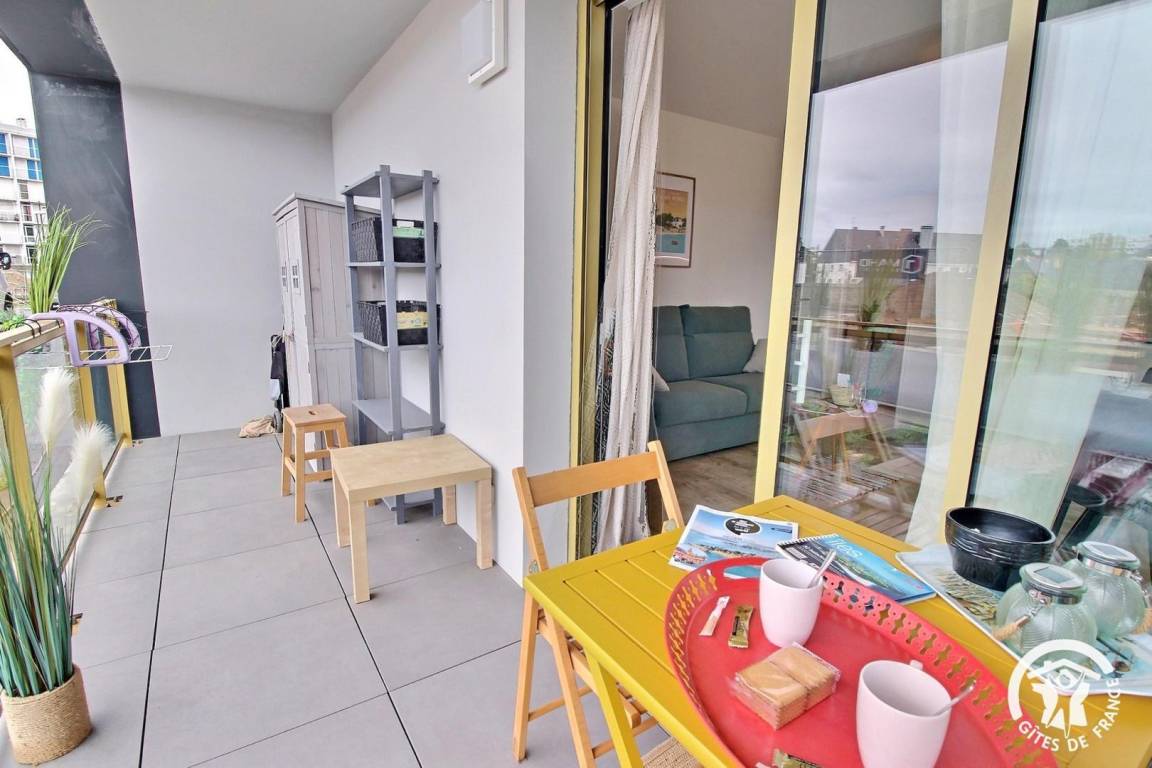 - Möblierter Balkon mit Tisch, Liegestuhl und Abstellschrank inklusive Strandspielzeug