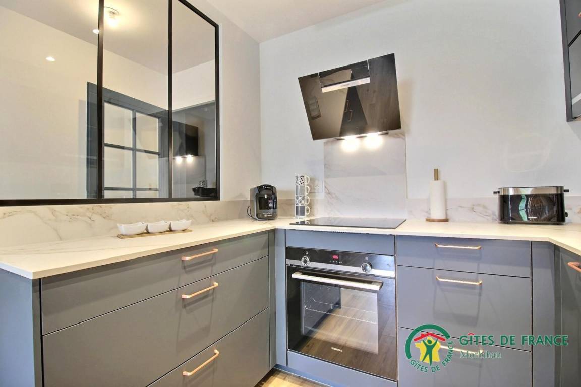 Im Herzen des Golfs von Morbihan ist Vannes der ideale Ort für einen Entdeckungsurlaub, ein romantisches Wochenende oder einen einzigartigen Urlaub. Sie befinden sich hier im Zentrum einer Stadt, die den Namen „Stadt der Kunst und Geschichte" trägt. Sie sind ideal gelegen, um die unumgänglichen Orte von Vannes zu entdecken: Place des Lices und sein Markt jeden Mittwoch- und Samstagmorgen (0,5 km), die Stadtmauer und ihre Blumengärten (0,6 km), das historische Zentrum mit seinen gepflasterten Straßen und halboffenen Häusern. Fachwerkhaus (0,6 km), der Yachthafen (0,8 km). Willst du abheben? Der Pier für die Inseln Île aux Moines, Île d'Arz und Belle Île en mer liegt 2 km entfernt. Für einen entspannten Tag gibt es schließlich den kleinen Strand von Conleau, der 4 km entfernt ist.