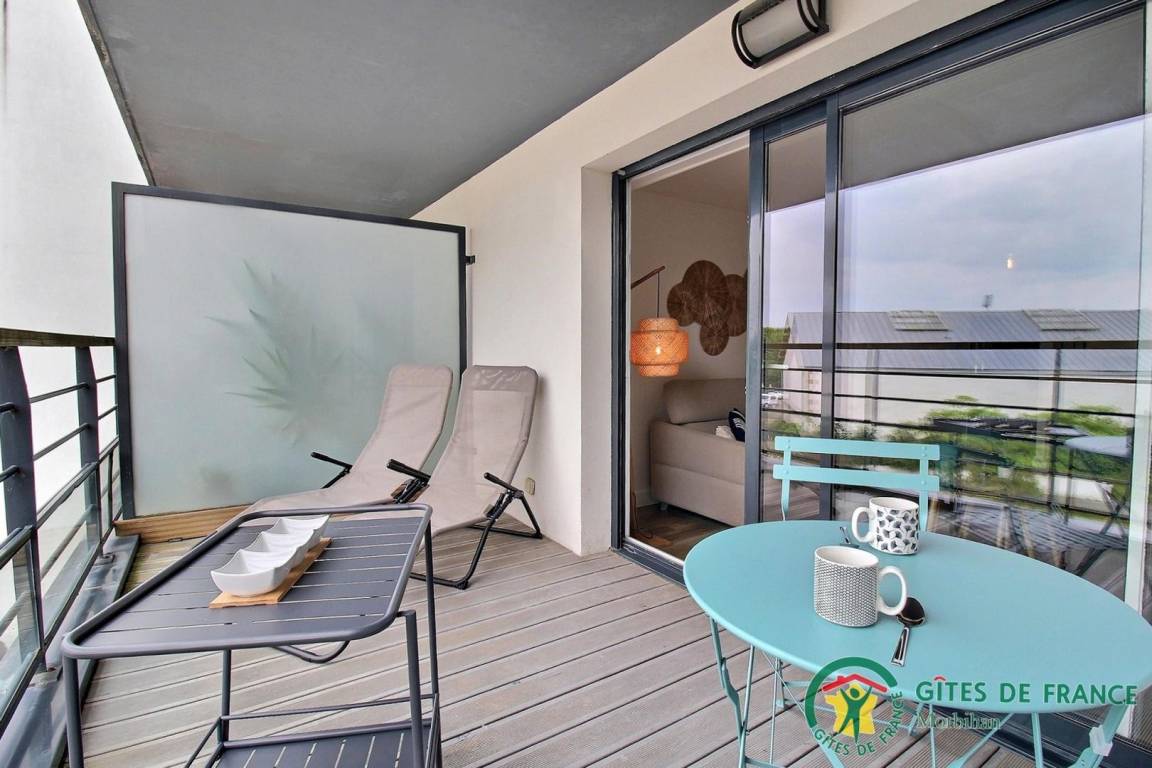 Diese Ferienwohnung besteht aus einem Eingang mit Schrank, einem Wohnzimmer mit Einbauküche, die zum Wohn-/Wohnzimmer hin offen ist, einem Schlafzimmer mit einem 160x200-Bett, einem Duschbad und einer separaten Toilette. Das Wohnzimmer bietet Zugang zu einem 8,7 m² großen Süd-West-Balkon mit Esstisch und Liegestühlen. Das Ferienhaus befindet sich im ersten Stock einer sicheren Residenz mit Aufzug, die sich über 3 Etagen erstreckt. Auf dem sicheren Parkplatz der Residenz ist ein Parkplatz für Sie reserviert.