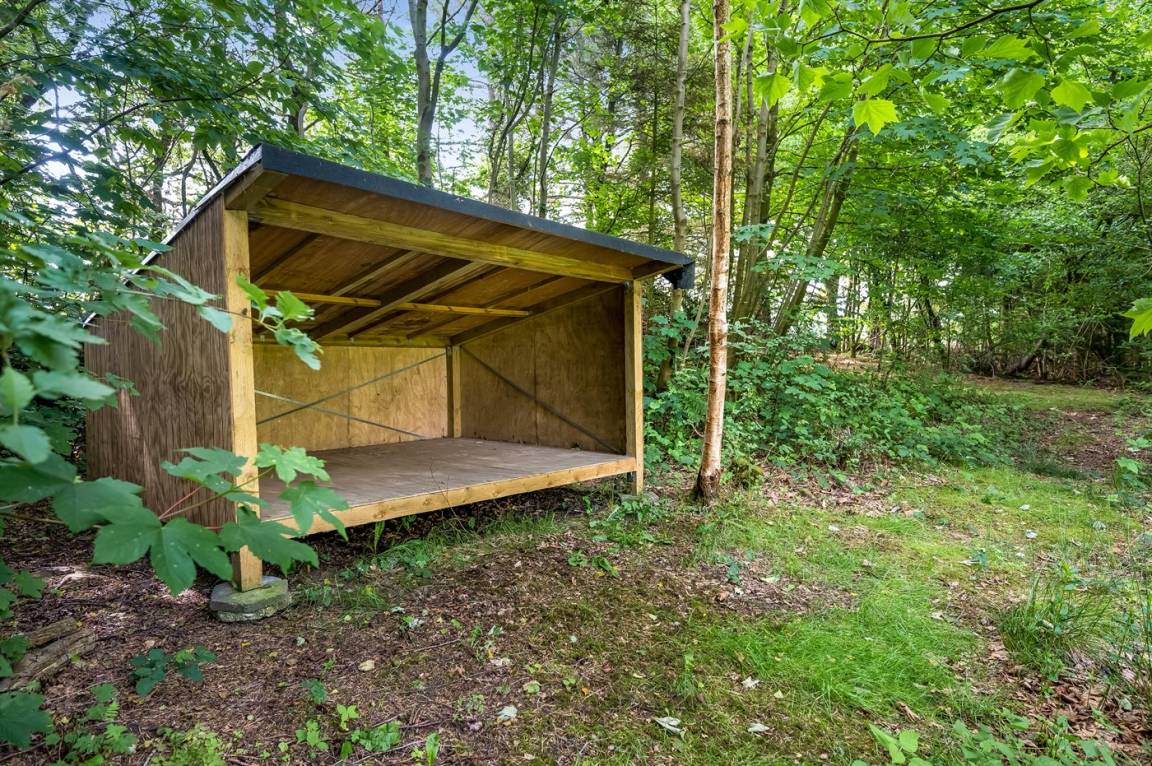 Für Outdoor-Liebhaber besteht die Möglichkeit, in der Windschutzhütte, die sich am See befindet, zu übernachten und es sich am Lagerfeuerplatz auf dem Rasen gemütlich zu machen.
