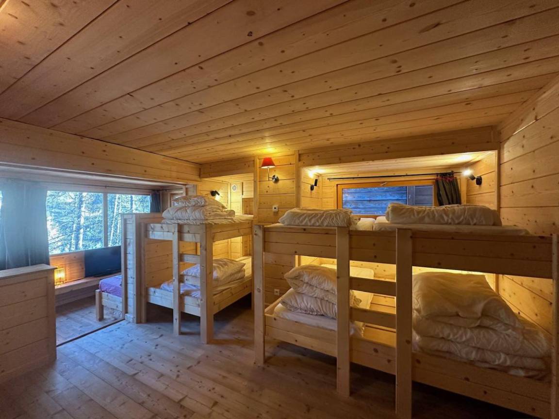 Es liegt 500 Meter von den Skiliften und 600 Meter vom Zentrum und den Geschäften entfernt. Eingebettet zwischen den Tannen und nur einen Steinwurf von einem kleinen Bach entfernt bietet es ein Gefühl der Abgeschiedenheit und ist dennoch in der Nähe von allem. Fläche von ungefähr 150 m². Orientierung : Ost, West. Niveau 0 : Waschräume mit Haartrockner, WC. mit 6 Stockbetten. Niveau 1 : Wohnzimmer mit Kamin. offene Küche mit Raclettegerät, Wasserkocher, Kaffeemaschine (Nespresso), Backofen, Toaster, Waschmaschine, Geschirrspülmaschine, Mikrowellenherd, 2 Induktionsherdplatten. separates WC. Terrasse. Niveau 2 : 2 Schlafzimmer mit Doppelbett. separates WC. Niveau 3 : Schlafzimmer mit Badewanne, Doppelbett, Haartrockner, WC. Die oberen Betten sind nicht für Kinder unter 6 Jahren geeignet.