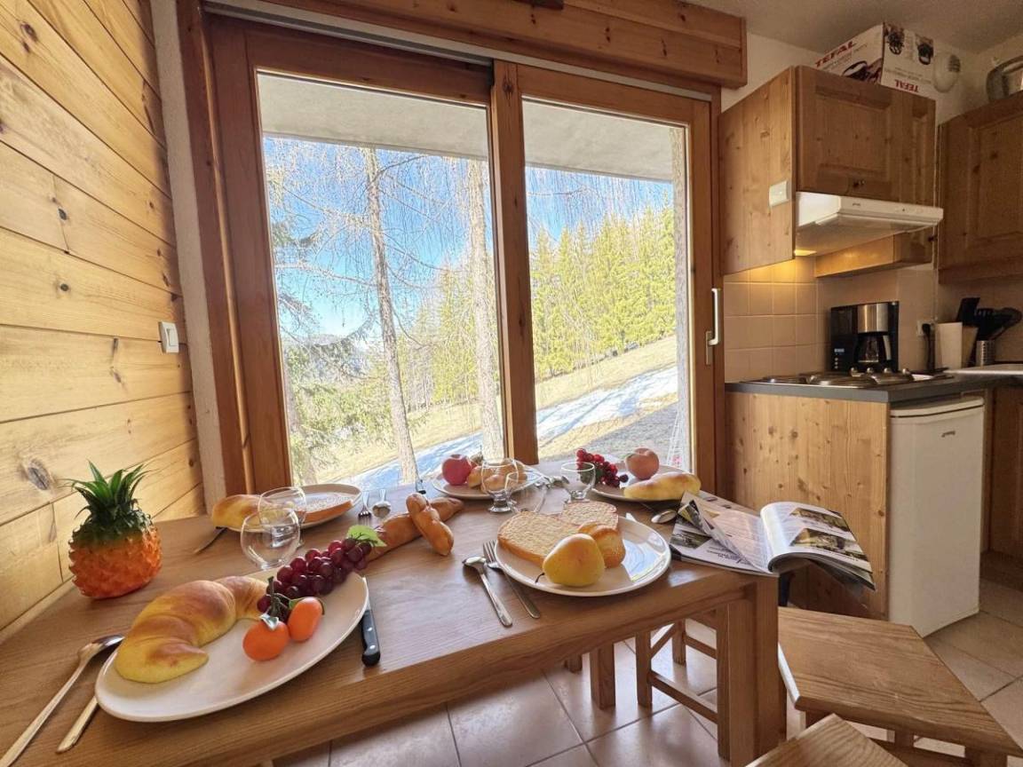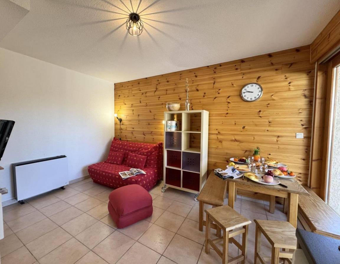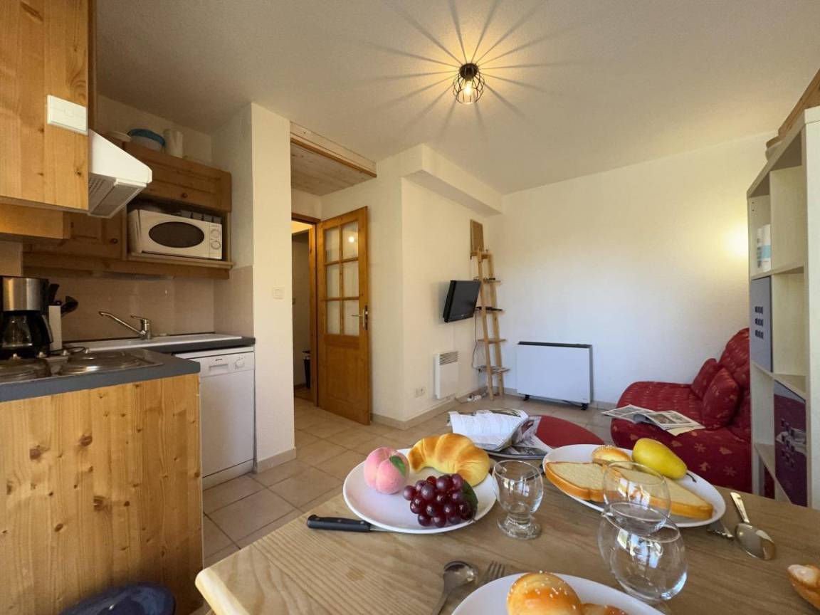 Die Residenz Chanalette befindet sich in Vars Saint-Marcellin, 2000 Meter vom Zentrum und 1700 Meter von den Skiliften entfernt. Genießen Sie eine freundliche und praktische Umgebung mit einer kostenlosen und häufig verkehrenden Shuttle-Haltestelle direkt vor der Residenz, sodass Sie bequem zum Bahnhof gelangen. Unsere Residenz ist ideal für einen Familienurlaub und bietet allen Komfort, den Sie für einen angenehmen Aufenthalt in den Bergen benötigen. Fläche von ungefähr 32 m². Erdgeschoss. Orientierung : West. Wohnzimmer mit Klappschlafcouch. offener Schlafbereich mit 3 Stockbetten. Kochnische mit Kaffeemaschine (filtre), Backofen, , Waschmaschine, Geschirrspülmaschine, Mikrowellenherd, Kochfeld, Kühlschrank. Waschräume. separates WC. Terrasse. Die oberen Betten sind nicht für Kinder unter 6 Jahren geeignet.