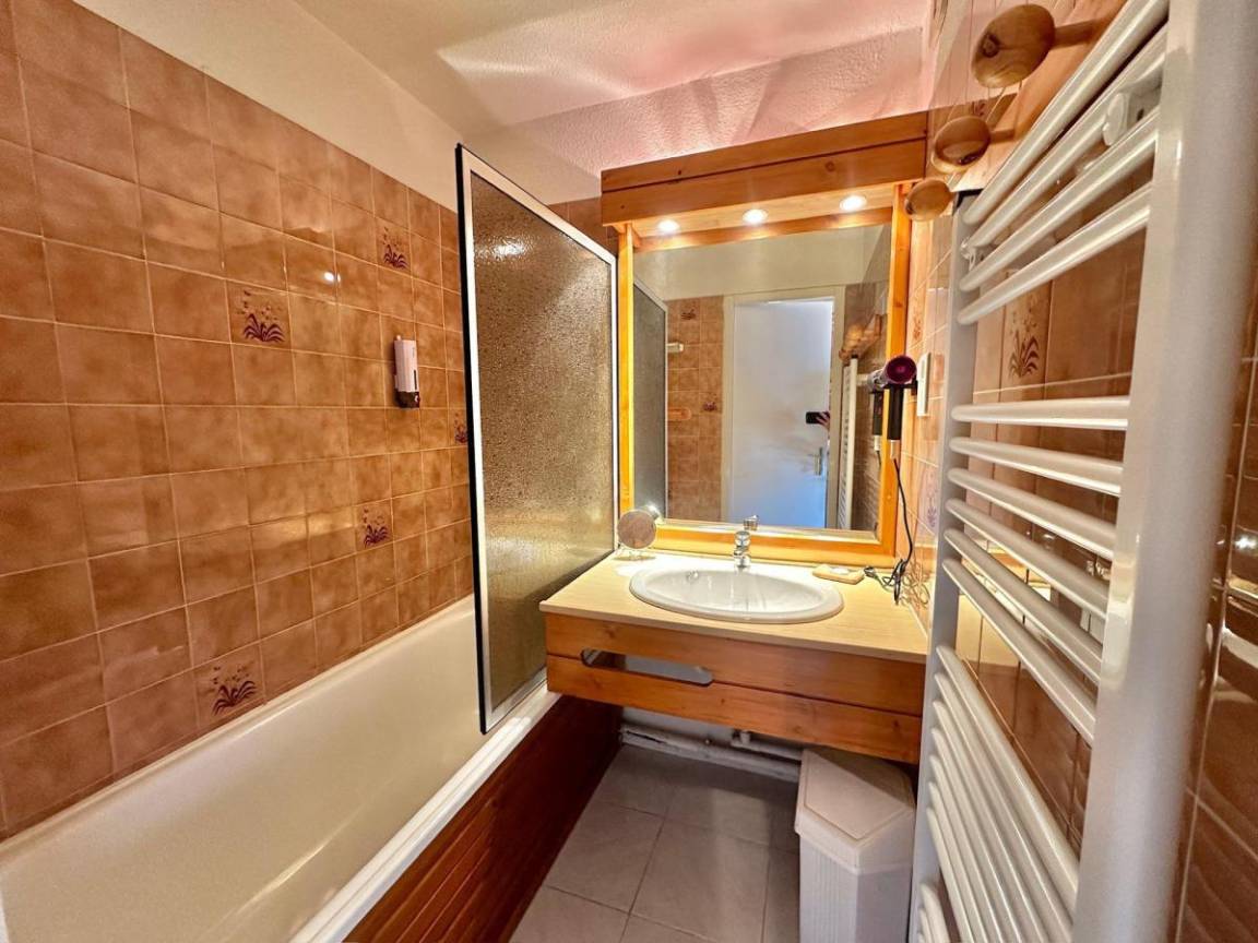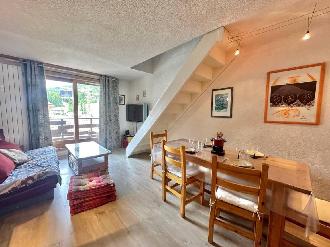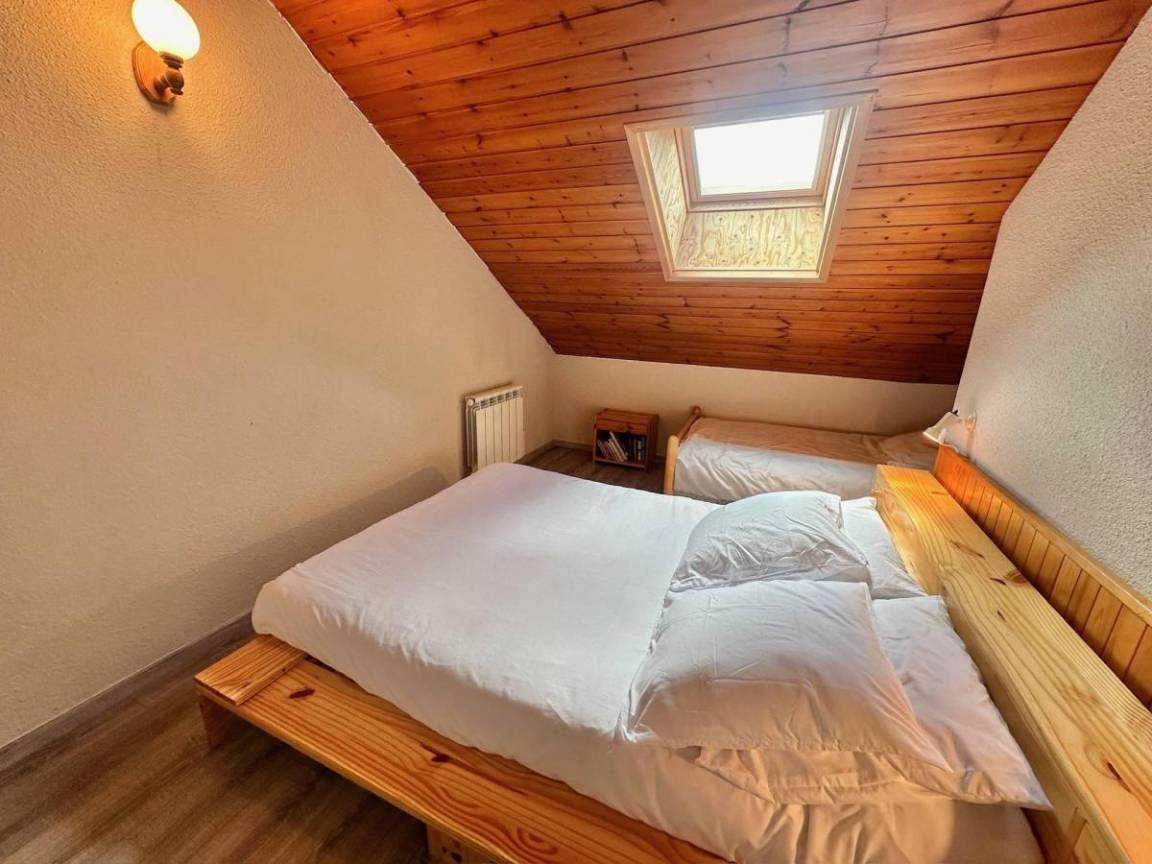 Fläche von ungefähr 45 m². 1te Etage. Orientierung : Ost, Süd. Blick berg ODER Blick station. Niveau 0 : Wohnzimmer mit Klappschlafcouch, Spieleraum, , TV. offene Küche mit Fonduegerät, Raclettegerät, Kaffeemaschine (filtre), Bügeleisen, Backofen, Geschirrspülmaschine, Mikrowellenherd, Mixer, 2 Glaskeramikkochfelder, Kühlschrank, . Badezimmer. WC. Balkon. Niveau 1 : Schlafzimmer mit Doppelbett (140*90), Einzelbett (90*190). Schlafzimmer mit Doppelbett (140*190). Waschräume.
