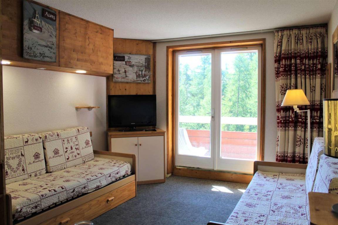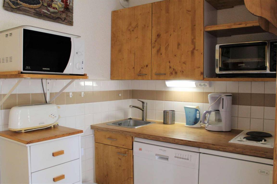 Fläche von ungefähr 25 m². 5te Etage. Orientierung : Süd-Ost. Blick berg. Wohnzimmer mit 2 Ausziehbetten (90), Einzelbett (90). offener Schlafbereich mit 2 Stockbetten (90). Kochnische mit Wasserkocher, Kaffeemaschine, Backofen, kleiner Backofen mit Mikrowellenfunktion, Toaster, Geschirrspülmaschine, 2 Glaskeramikkochfelder, Kühlschrank. Badezimmer mit Badewanne, Waschbecken. separates WC. Balkon. Die oberen Betten sind nicht für Kinder unter 6 Jahren geeignet.