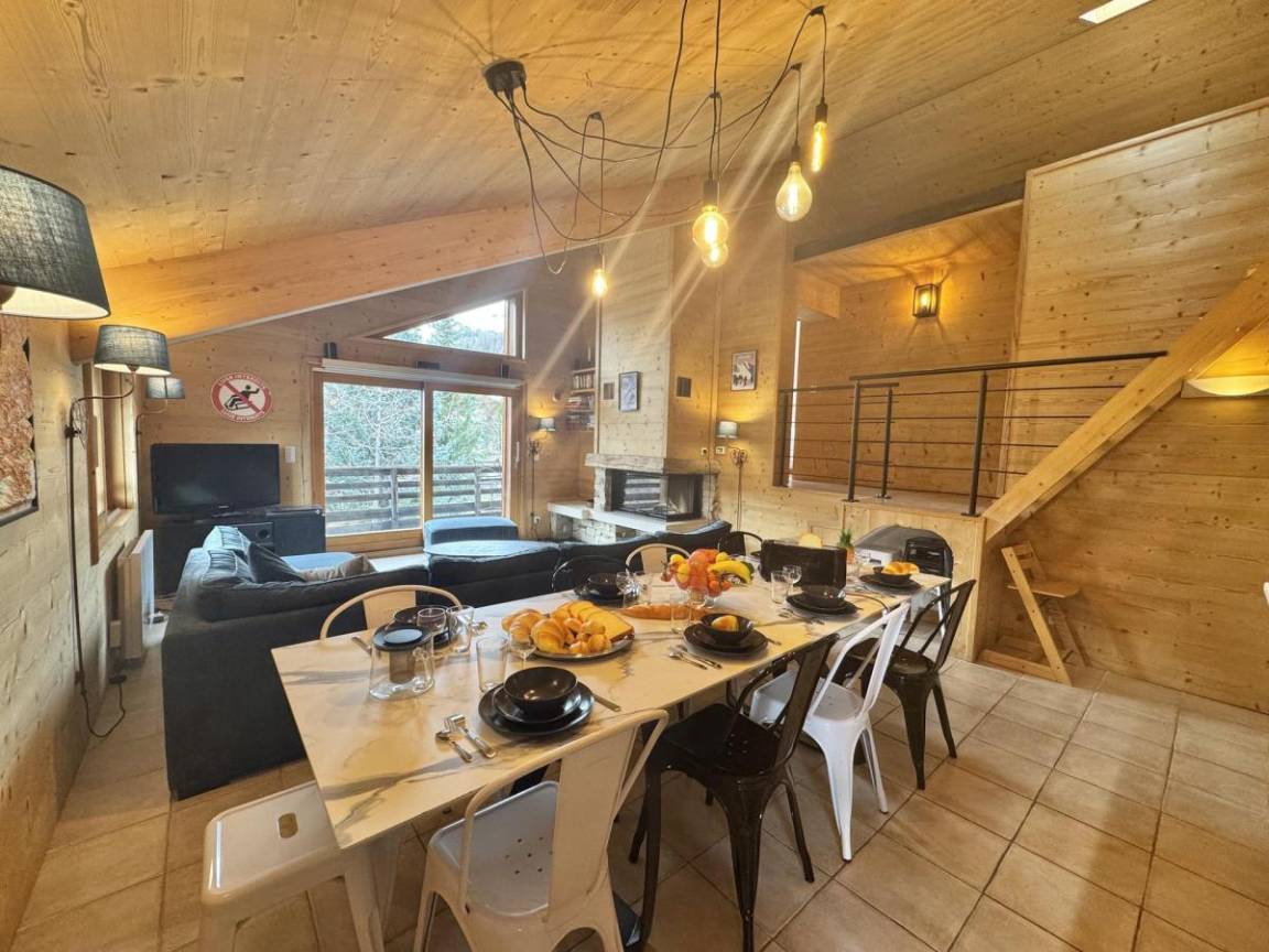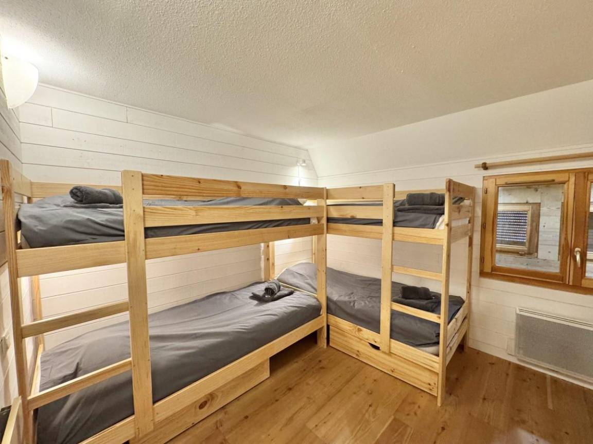Fläche von ungefähr 125 m². Orientierung : Nord, Ost, Süd. Blick berg. Niveau 0 : Diele. Wohnzimmer mit Kamin, TV. mit Balkon, Klappschlafcouch, Küchenecke, , TV, WC. offene Küche mit , 2 Raclettekochgeräte, Wasserkocher, Kaffeemaschine (nespresso), Backofen, Toaster, Geschirrspülmaschine, Mikrowellenherd, Mixer, Kühl-Gefrier-Kombination. WC. Niveau 1 : Schlafzimmer mit Doppelbett. Schlafzimmer mit 4 Stockbetten. Badezimmer. WC. Niveau 2 : Schlafzimmer mit 2 Einzelbetten, Stockbett (1 place). Schlafzimmer mit , Doppelbett. Waschräume. WC. Die oberen Betten sind nicht für Kinder unter 6 Jahren geeignet.
