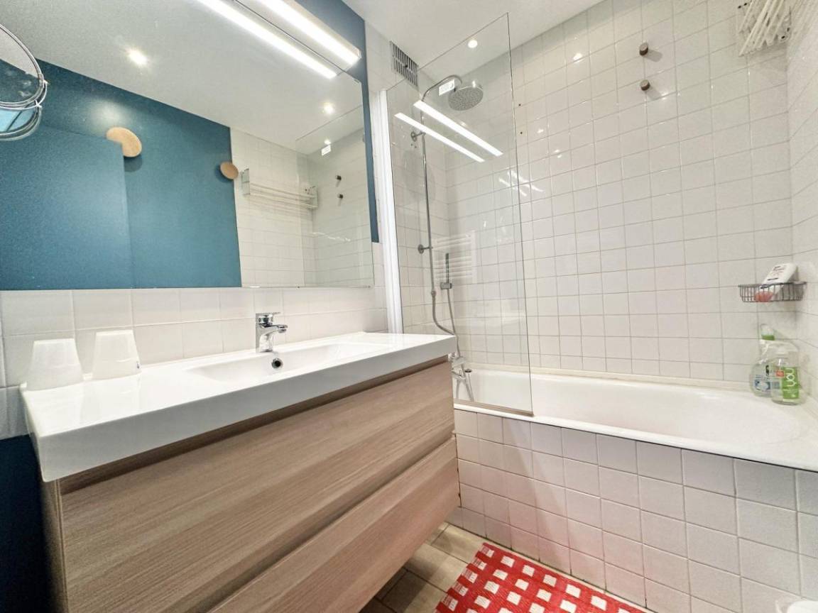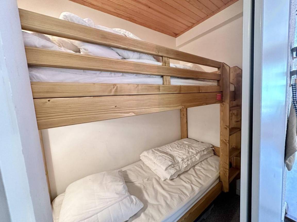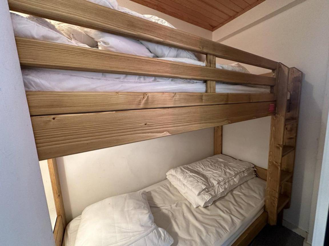 Residenz mit Aufzug. Fläche von ungefähr 45 m². 4te Etage. Orientierung : Süd. Blick schwimmbad ODER Blick berg. Wohnzimmer mit Klappschlafcouch (140*190). Schlafzimmer mit Doppelbett (140*190). offener Schlafbereich mit Stockbett (90*180). offene Küche mit Wasserkocher, Kaffeemaschine (filtre), Toaster, Geschirrspülmaschine, Kühl-Gefrier-Kombination. Badezimmer. Die oberen Betten sind nicht für Kinder unter 6 Jahren geeignet.