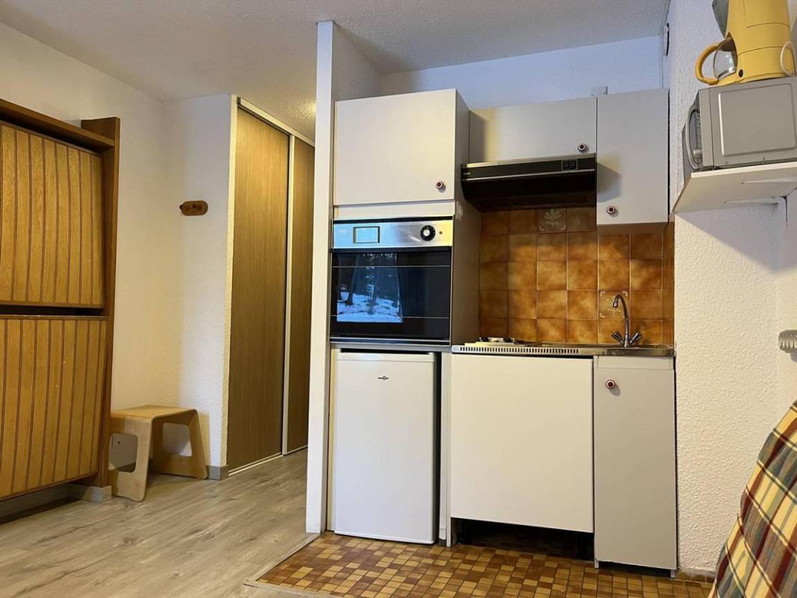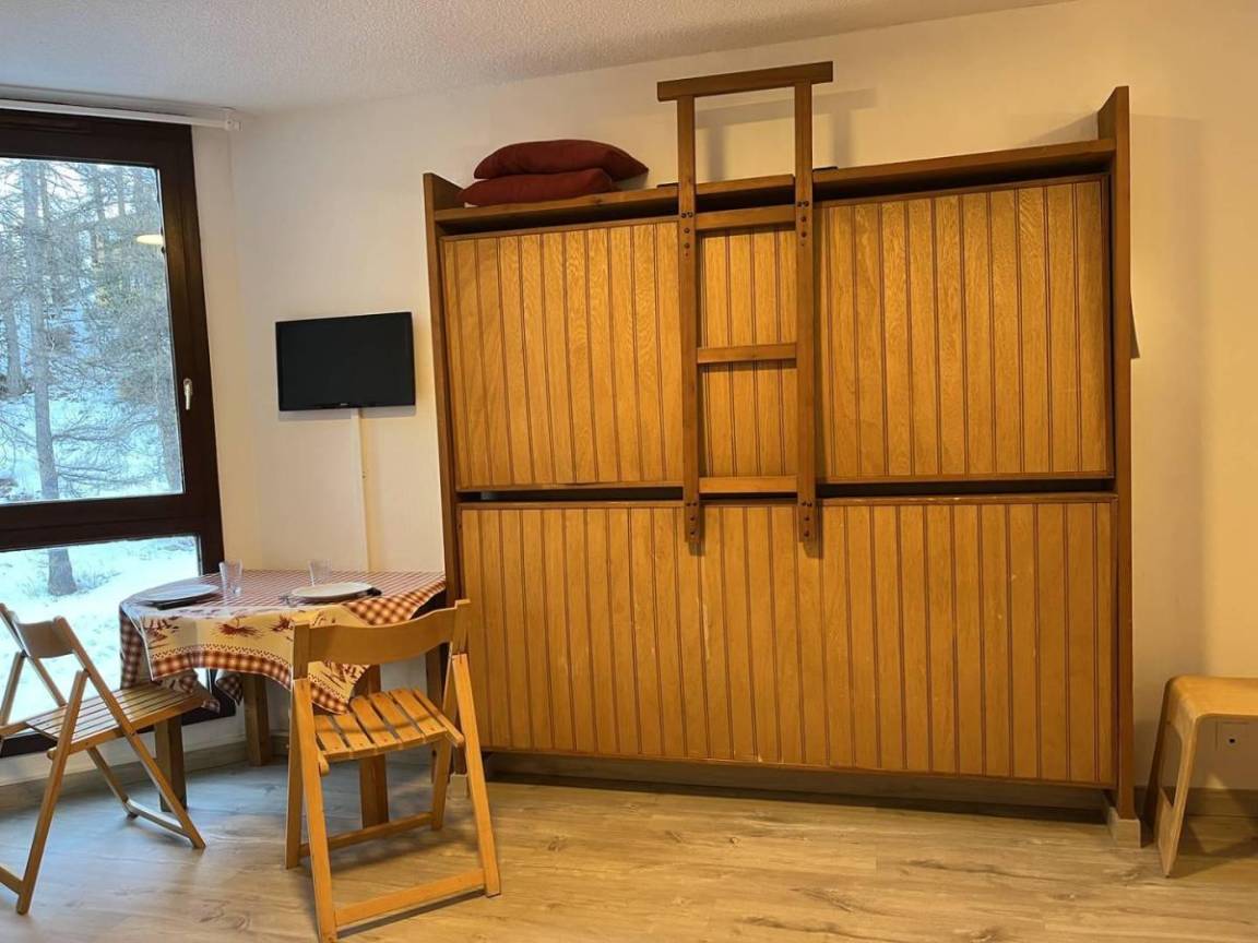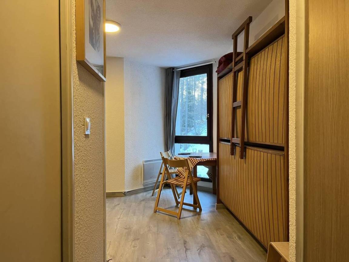 Die Residenz Ski Soleil befindet sich in idealer Lage im Zentrum des Ferienortes Var Les Claux, in der Nähe von Geschäften und Dienstleistungen. Das Gebäude besteht aus 8 Etagen mit Aufzug und die Apartments bieten einen Blick auf den Ferienort. Fläche von ungefähr 18 m². 2te Etage. Orientierung : Nord-West. Wohnzimmer mit BZ-Sofas (2 personnes). Kochnische mit Geschirrspülmaschine, Mikrowellenherd, Kühlschrank. Badezimmer mit WC.