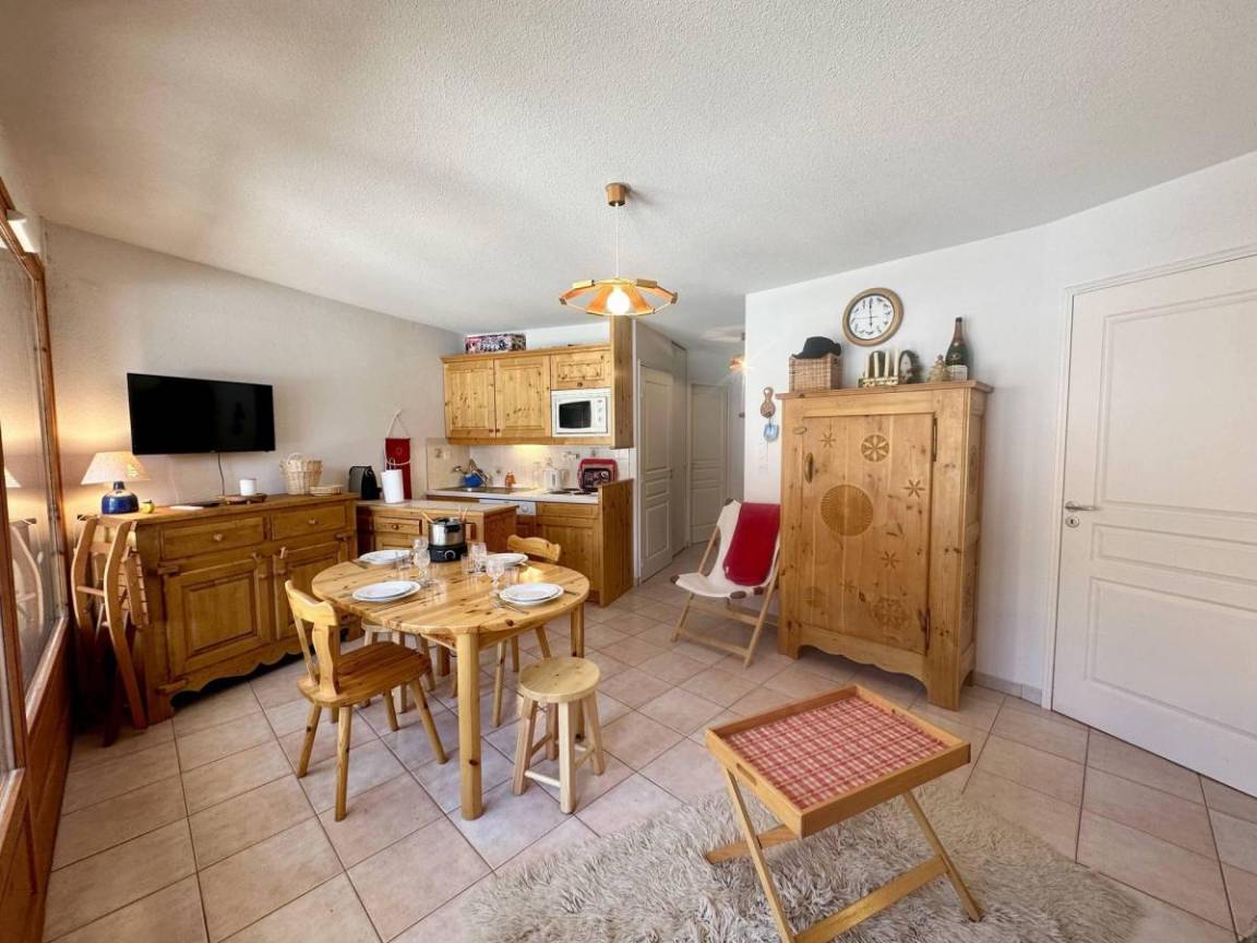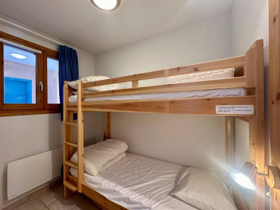 Fläche von ungefähr 43 m². 1te Etage. Orientierung : Süd. Blick berg. Wohnzimmer mit 2 Ausziehbetten. Schlafzimmer mit Doppelbett. Schlafzimmer mit 2 Stockbetten. Kochnische mit Fonduegerät, Raclettegerät, Kaffeemaschine (Nespresso), Toaster, Geschirrspülmaschine, Mikrowellenherd, Kühlschrank. Badezimmer. separates WC. Terrasse. Waschmaschine. Die oberen Betten sind nicht für Kinder unter 6 Jahren geeignet.
