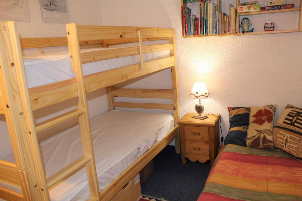 Die Residenz Ski Soleil befindet sich in idealer Lage im Zentrum des Ferienortes Var Les Claux, in der Nähe von Geschäften und Dienstleistungen. Das Gebäude besteht aus 8 Etagen mit Aufzug und die Apartments bieten einen Blick auf den Ferienort. Fläche von ungefähr 38 m². 4te Etage. Orientierung : Süd-West. Wohnzimmer mit Klappschlafcouch (140). offener Schlafbereich mit 2 Stockbetten (90). offener Schlafbereich mit Doppelbett (140). Kochnische mit Wasserkocher, Kaffeemaschine (dosette), kleiner Backofen mit Mikrowellenfunktion, Toaster, Geschirrspülmaschine, Herdplatten, Kühlschrank. Badezimmer mit Badewanne. separates WC. Balkon. Die oberen Betten sind nicht für Kinder unter 6 Jahren geeignet.
