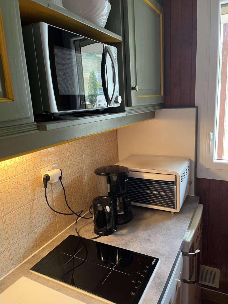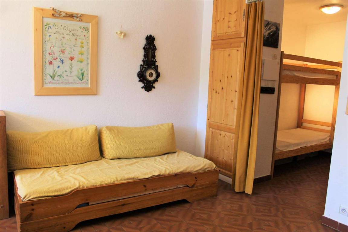 Die Residenz Centre Vars befindet sich im Herzen des Resorts. Sie besteht aus 5 Etagen mit Aufzug und befindet sich neben Geschäften. In der Nähe der Residenz können Sie alle Vergnügungen und Aktivitäten von Vars entdecken. Fläche von ungefähr 30 m². 3te Etage. Orientierung : Süd. Wohnzimmer mit 2 Ausziehbetten (90). offener Schlafbereich mit 2 Stockbetten (90). Kochnische mit Kaffeemaschine, kleiner Backofen mit Mikrowellenfunktion, Geschirrspülmaschine, kleiner Backofen, Induktionsherdplatten, Kühlschrank. Waschräume mit Dusche, Waschbecken. separates WC. Balkon. Die oberen Betten sind nicht für Kinder unter 6 Jahren geeignet.