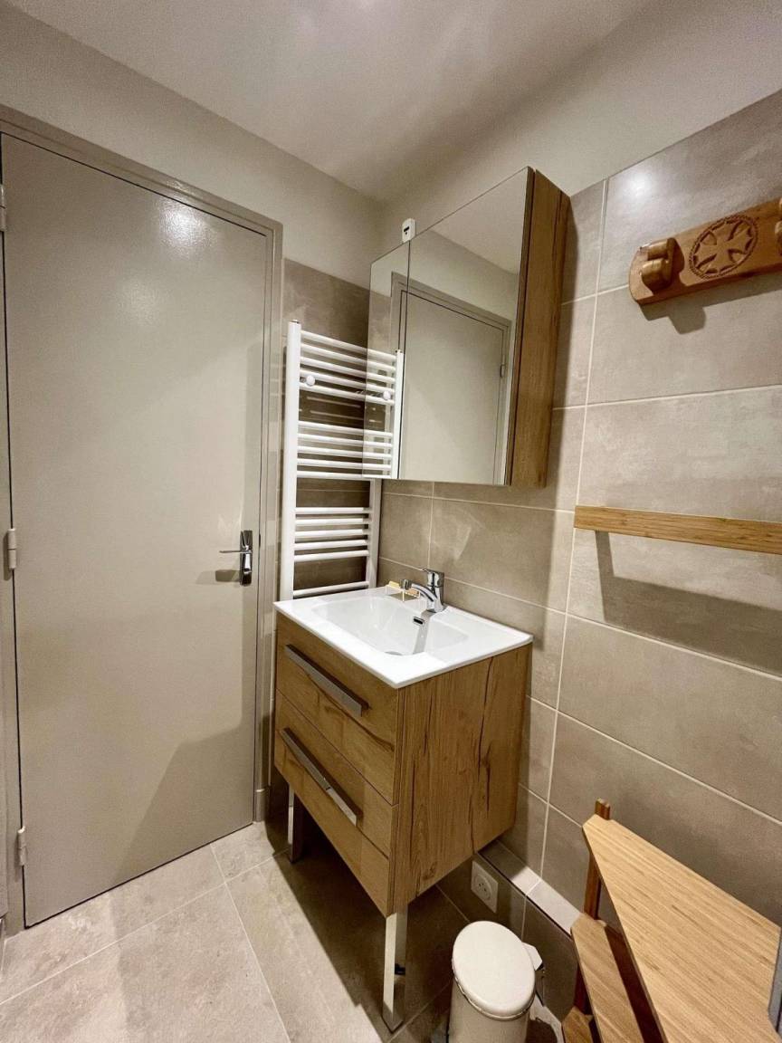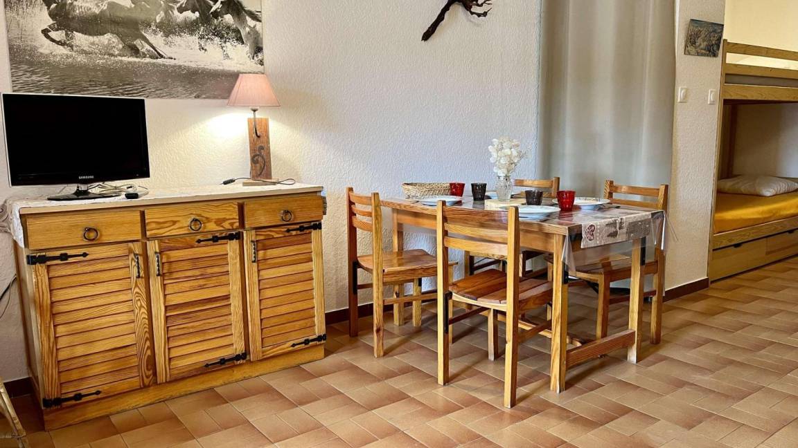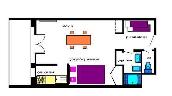 Die Residenz Centre Vars befindet sich im Herzen des Resorts. Sie besteht aus 5 Etagen mit Aufzug und befindet sich neben Geschäften. In der Nähe der Residenz können Sie alle Vergnügungen und Aktivitäten von Vars entdecken. Fläche von ungefähr 30 m². 5te Etage. Orientierung : Süd. Wohnzimmer mit Doppelbett (140). offener Schlafbereich mit 2 Stockbetten (90). Kochnische mit Kaffeemaschine, Backofen, Toaster, Geschirrspülmaschine, Mikrowellenherd, 4 elektronische Herdplatten, Kühlschrank. Waschräume mit Dusche. separates WC. Die oberen Betten sind nicht für Kinder unter 6 Jahren geeignet.